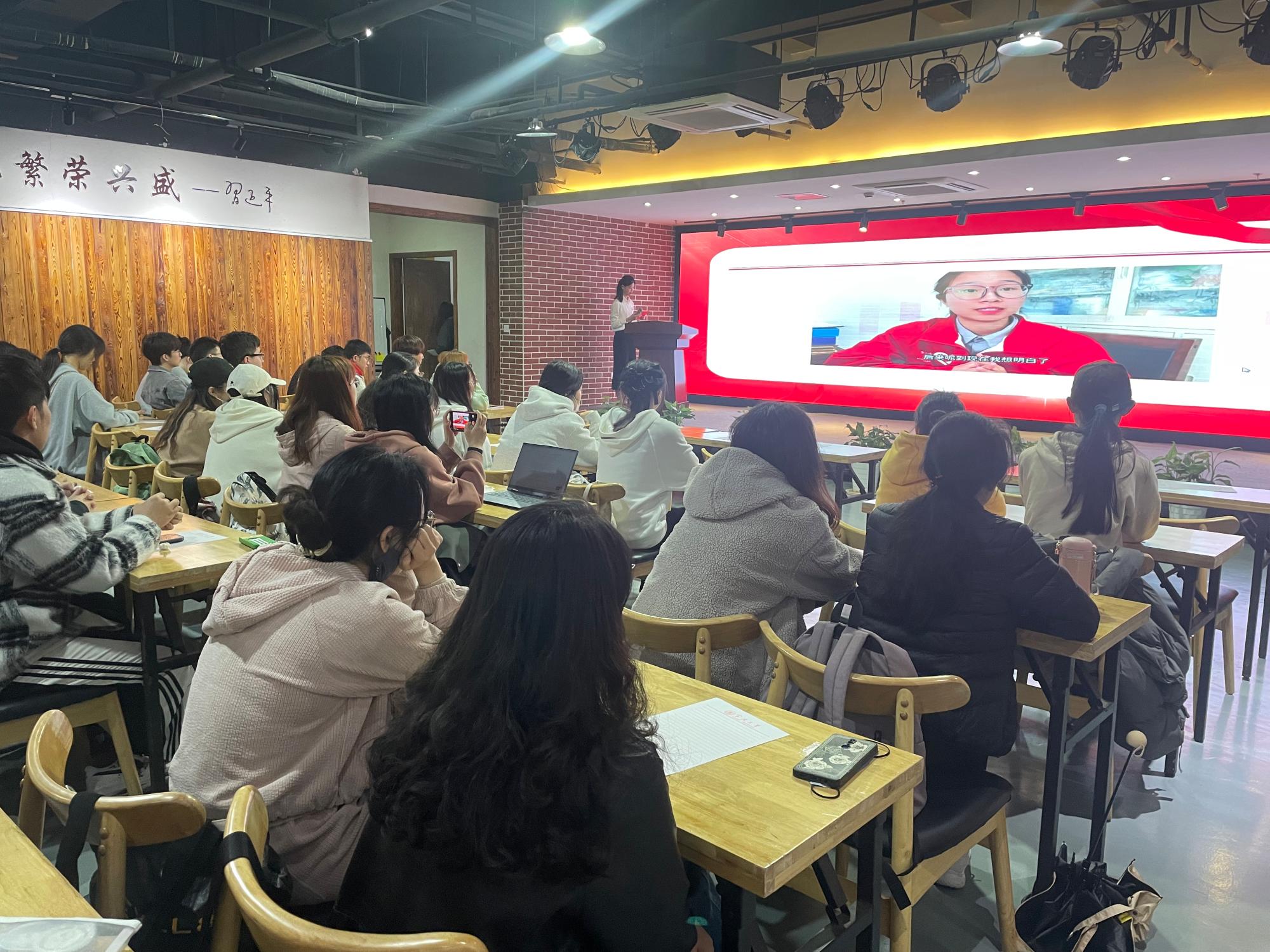 4月25日,在五四青年节即将到来之际,为扎实开展学习贯彻习近平新时代中国特色社会主义思想主题教育,用鲜活、生动的形式激励团员青年投身全面建设社会主义现代化新征程,四虎影院 团委联合江北区文教街道团工委组织开展“一代青年一个‘young’,奏响青春奋斗‘音’”五四青年节主题教育活动。本次活动邀请了退伍军人钟欣、宁波音乐港青少年交响乐团艺术总监戚缪笛,共有60余名优秀团员代表参加。