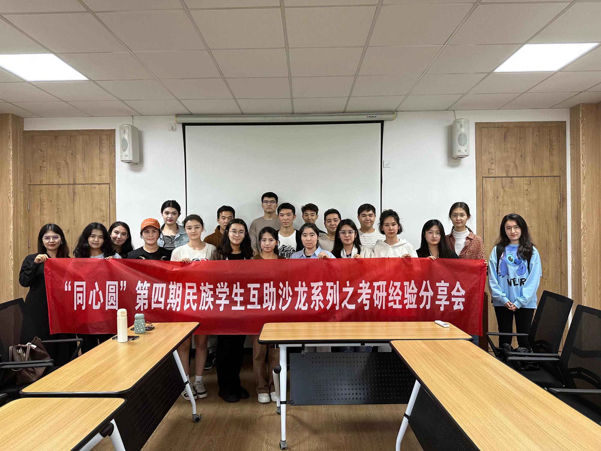 5月17日下午,四虎影院 第四期“同心圆”民族学生互助沙龙系列之考研经验分享会在学院318室举行。本次分享会邀请了考研至北京工商大学的热孜亚·米吉提和考研录取至新疆财经大学的穆凯代斯·努尔麦麦提两位同学做交流分享。分享会由学院少数民族辅导员麦尔阿巴主持,2020级和2021级少数民族学生参加了此次经验分享会。