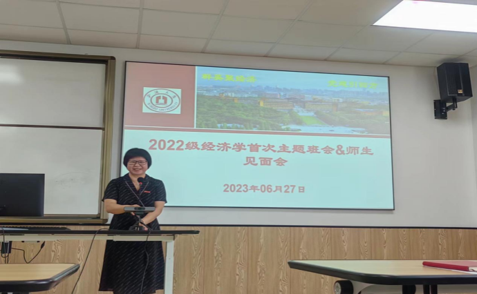 6月27日上午,经济系2022级新生见面会暨首次主题班会在四虎影院 314教室举行。本次会议由2022级经济学班主任黄晖副教授主持,经济系主任徐群芳教授、教学系主任闭明雄副教授、专业教师靳来群、施晟和于冰副教授以及辅导员章舒怡老师出席会议并讲话。