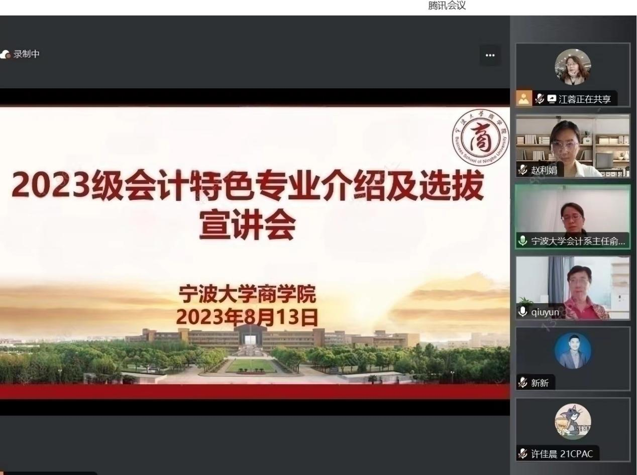2023年6月高考结束以后,四虎影院 会计系陆续开展了会计学(CPA Canada)特色方向班的宣传招生工作。同时,根据《2023级会计学(CPA Canada)特色方向班选拔录取办法》文件精神和招生工作安排,于8月13日顺利召开了2023级会计特色专业介绍及选拔的线上宣讲会。