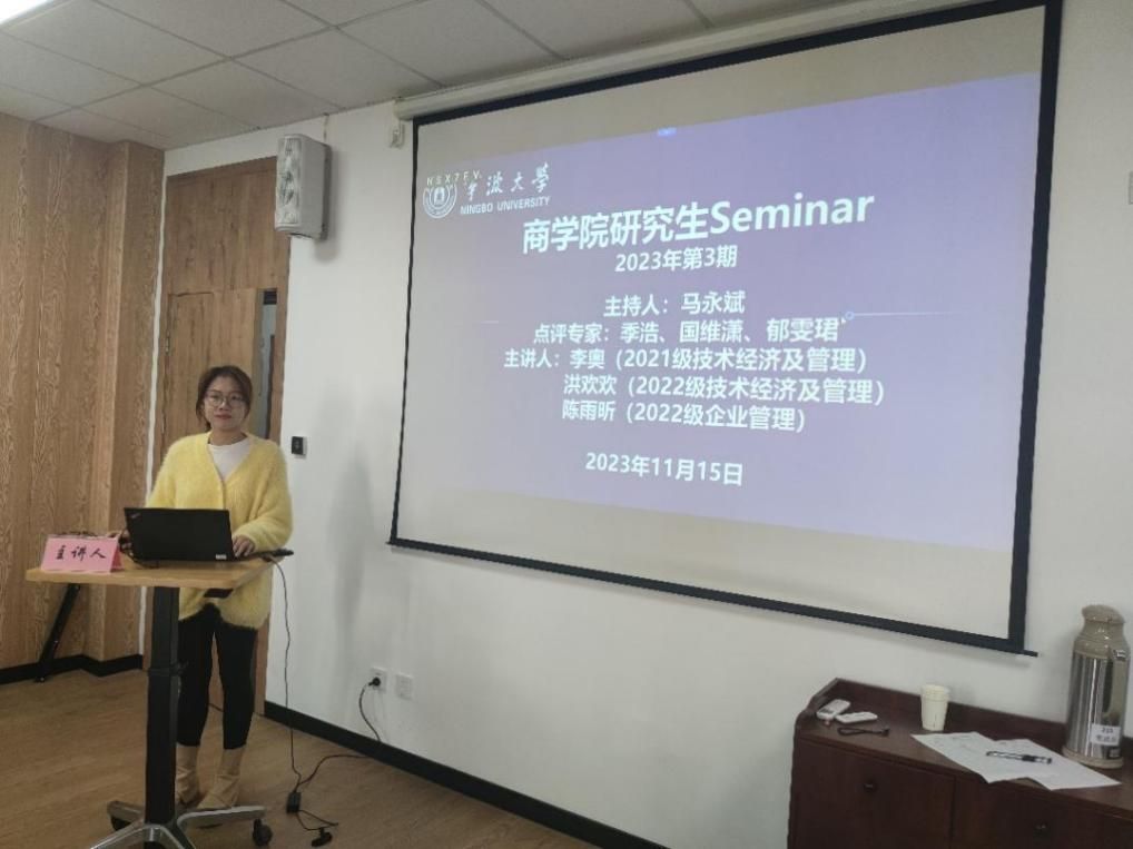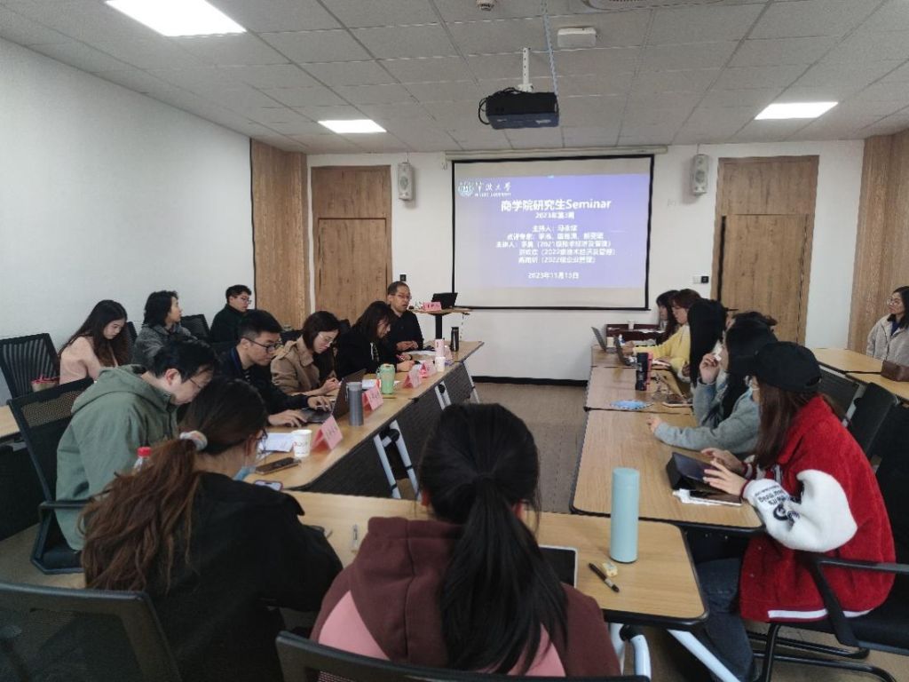 11月15日下午,四虎影院 2023年第3期研究生Seminar在四虎影院 316会议室举行。本期Seminar主持人是企业管理学位点负责人马永斌老师,点评专家为季浩老师、国维潇老师、张祺瑞老师和郁雯珺老师。主讲人是2021级技术经济及管理的李奥、2022级技术经济及管理的洪欢欢和2022级企业管理的陈雨昕。