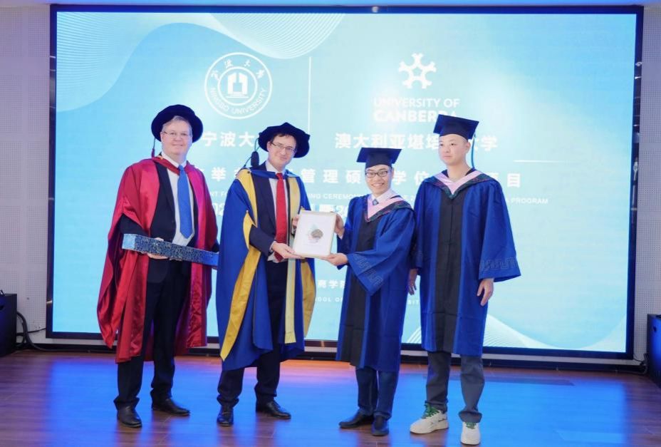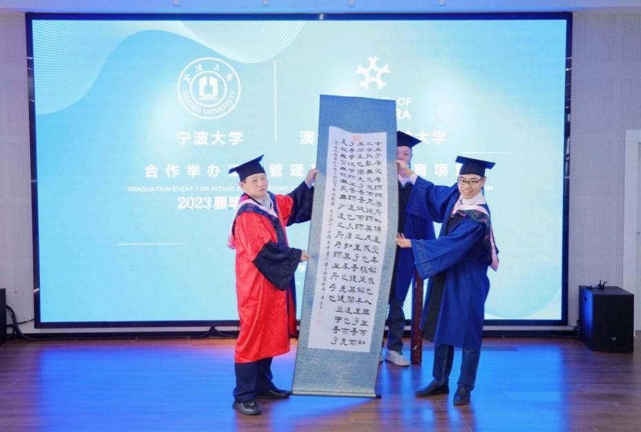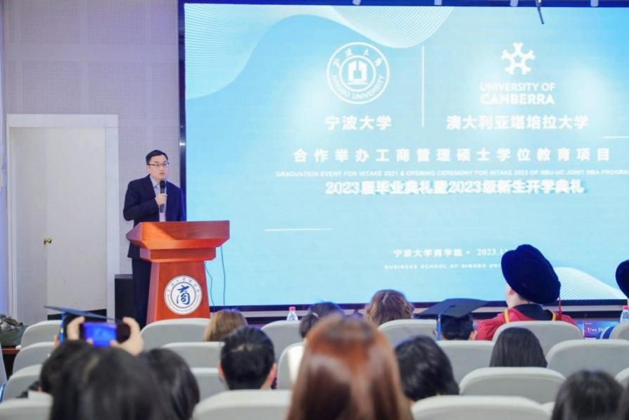 11月18日下午,四虎影院 中澳MBA项目2023届毕业典礼暨2023级开学典礼在四虎影院 五楼报告厅隆重举行。四虎影院 院长金祥荣、党委副书记韩雯琛、副院长彭新敏、中澳MBA项目教师代表、国际办等出席典礼。澳大利亚堪培拉大学商政法学院院长UweDulleck教授、工商系主任LorneCummings教授等专程从澳洲赶来与2023届毕业生和2023级新生一起见证这个重要时刻。典礼由彭新敏副院长主持。