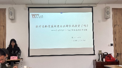 程琴琴从数字金融研究现状出发,依托工商登记注册信息构建企业跨区域投资关系网络,基于双重固定模型汇报了论文《数字金融发展促进企业跨区域投资了吗?——来自2亿工商登记注册信息的经验证据》,点评老师指出研究做得很扎实,同时也提出需要在充分研读文献的基础上构建起可以为实证提供依据的理论分析框架,写得好同时也要把故事讲得好,呼吁同学们要注重对学术报告的重视。