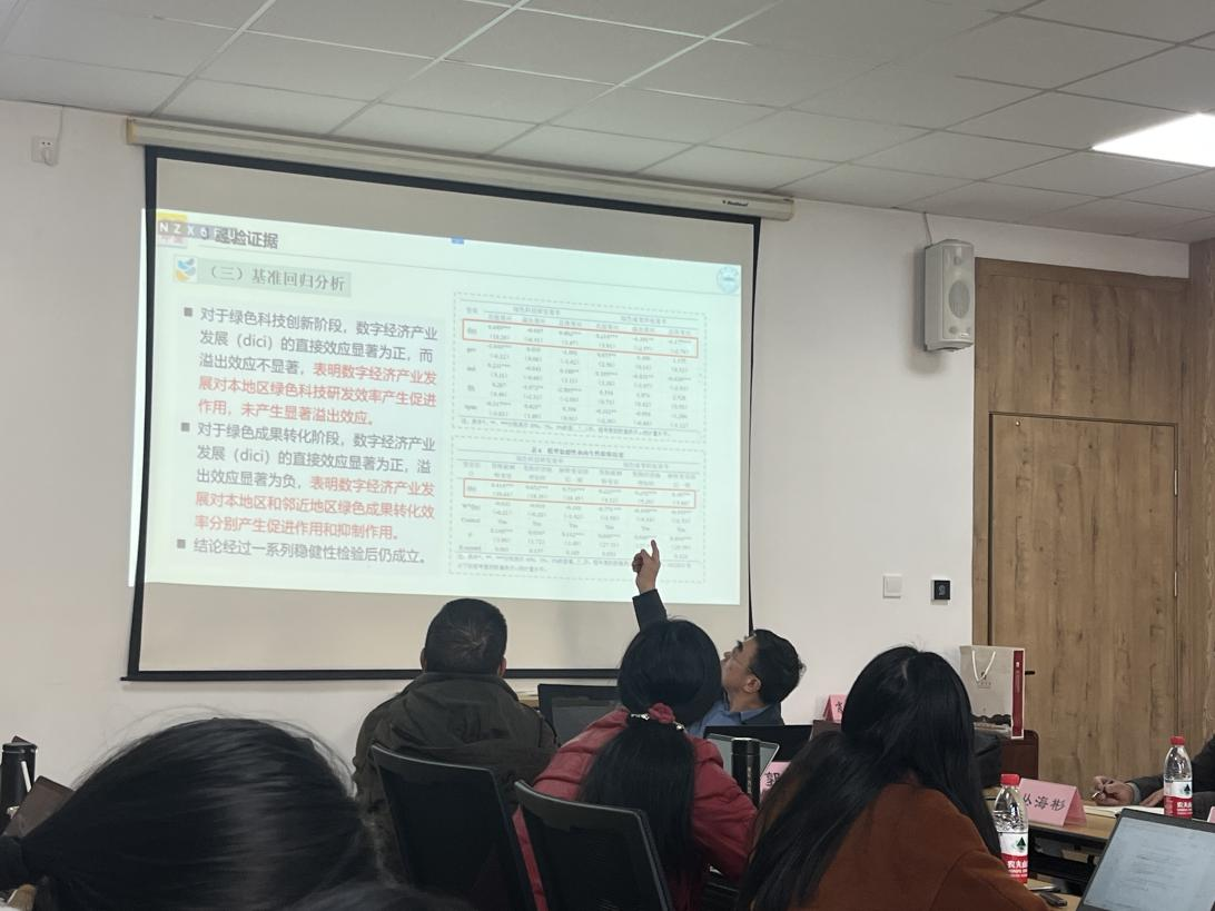 如何兼顾环境保护与高质量发展,已成为社会各界着重关注的热点议题。12月8日下午,四虎影院 国贸系邀请兰州大学经济学院原院长郭爱君教授开讲,以“数字经济产业发展对城市绿色创新效率的影响:基于两阶段价值论”为主题在四虎影院 320研讨室作了一场精彩的学术讲座。本次讲座由四虎影院 国贸系系主任丛海彬教授主持,吸引了院内8位老师以及20余位硕士生参与。