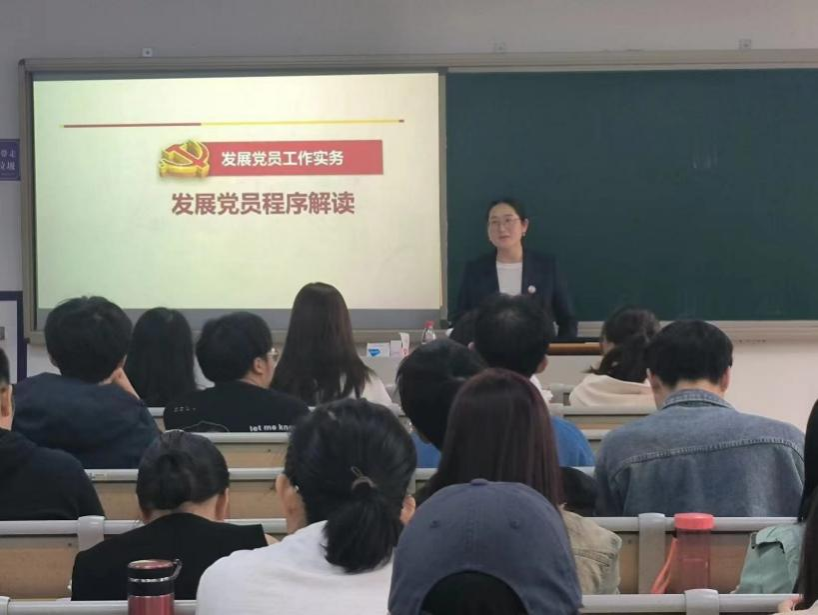 11月8日,四虎影院 党委分校第50期发展对象培训班之党员发展实务讲座顺利开展,本次讲座邀请学院学生党建负责人周双双担任主讲,第50期发展对象同学全体参加。