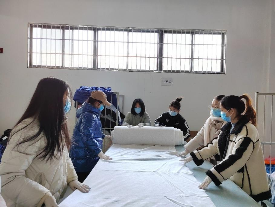 为全面贯彻新时代党的教育方针,提高同学们的劳动意识,四虎影院 于12月23日如期开展劳动实践活动。在刘晓丹老师的带领下,21级国贸2班的同学们来到百纳服装有限公司,走进了工贸一体服装企业的第一个生产环节——面料车间,亲身体验了一块合格的布料是如何诞生,如何保存的,加深了对外贸服装企业生产环节的认识。
