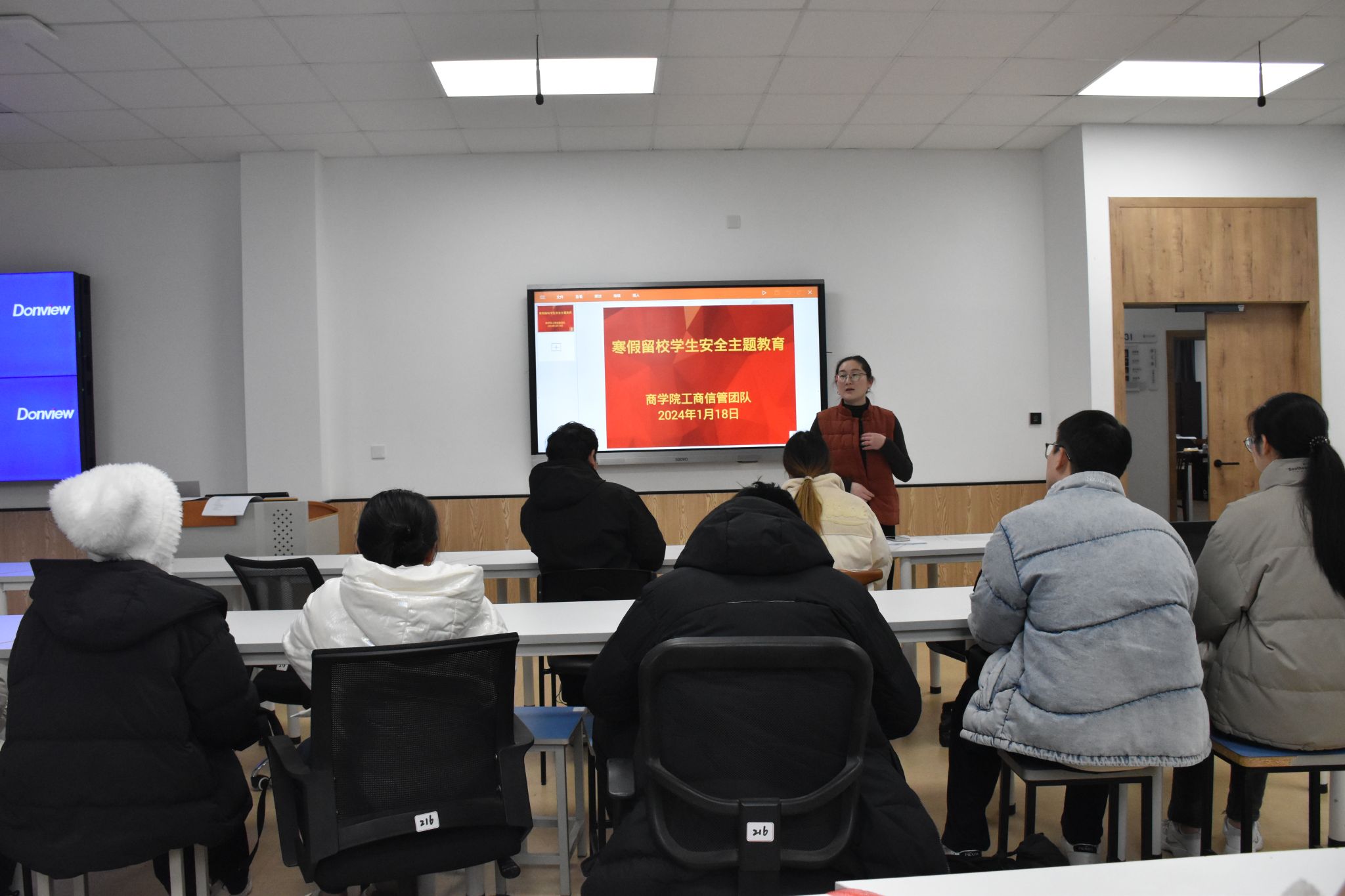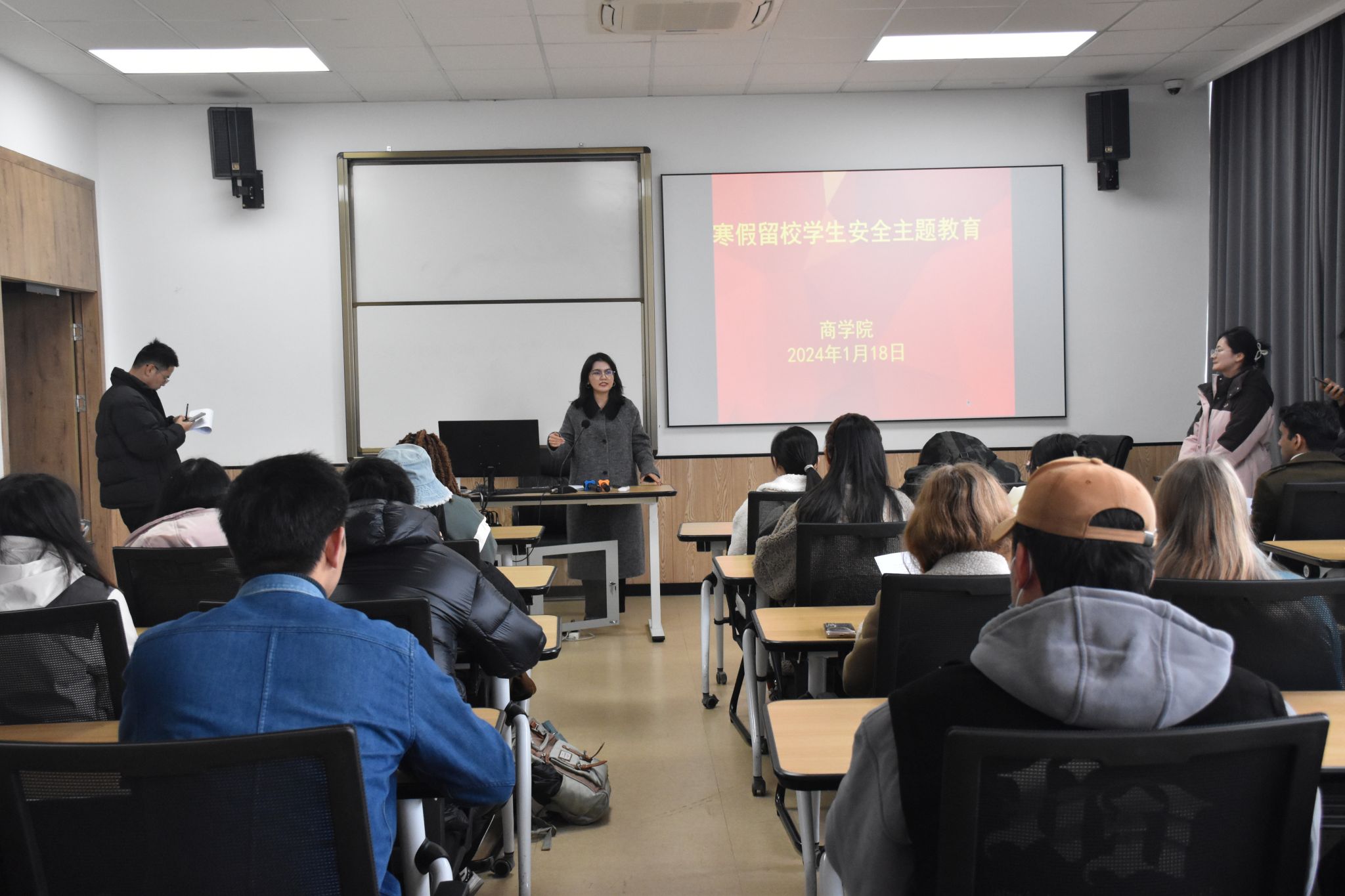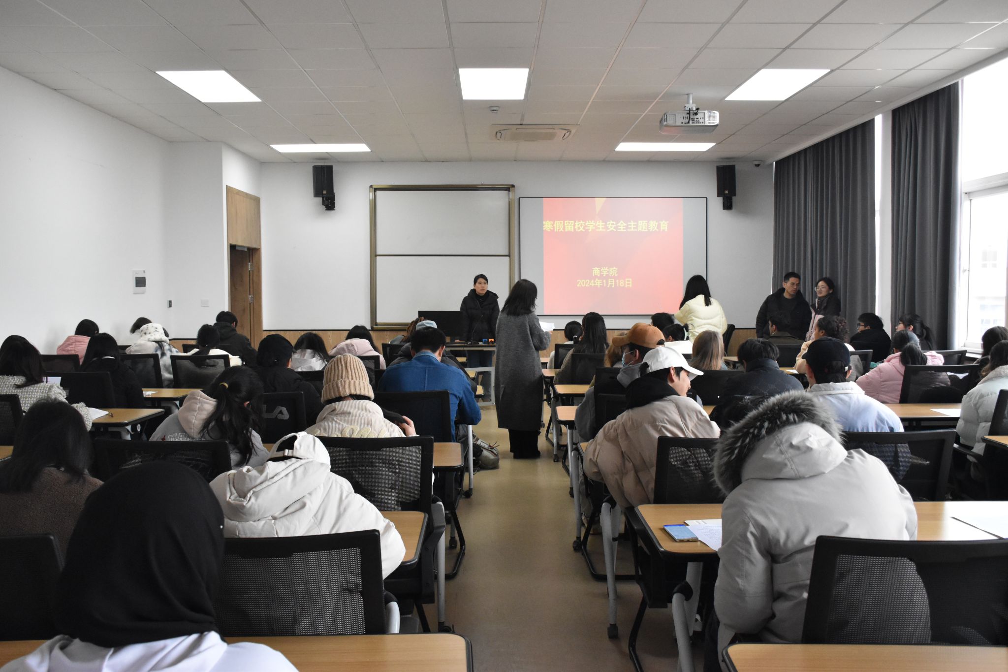 为加强寒假留校学生管理工作,提高学生留校期间的安全意识,1月18日下午,四虎影院 在学院523教室和216教室召开寒假留校学生安全教育会议,学院辅导员和百余名寒假留校学生参加。