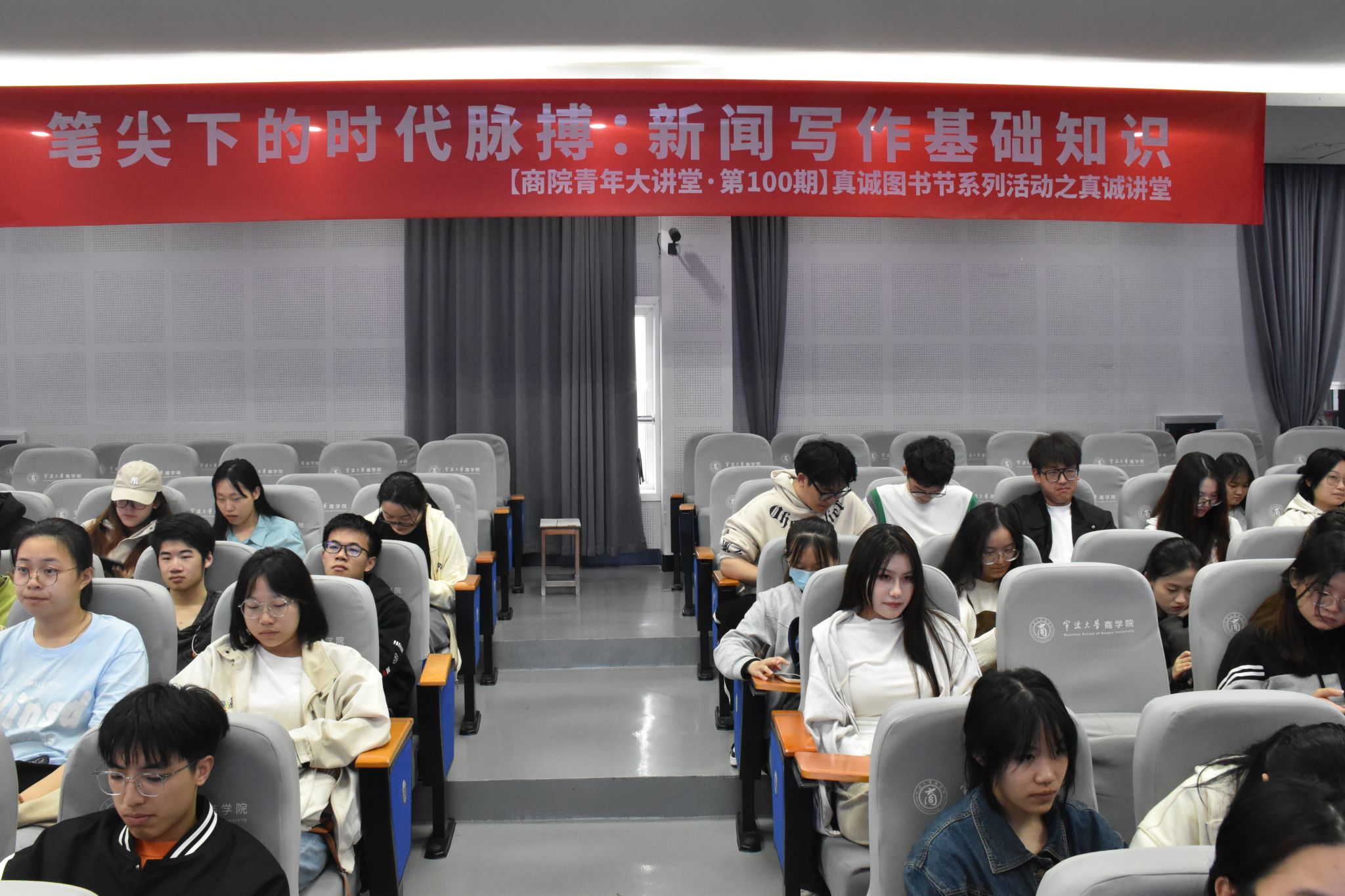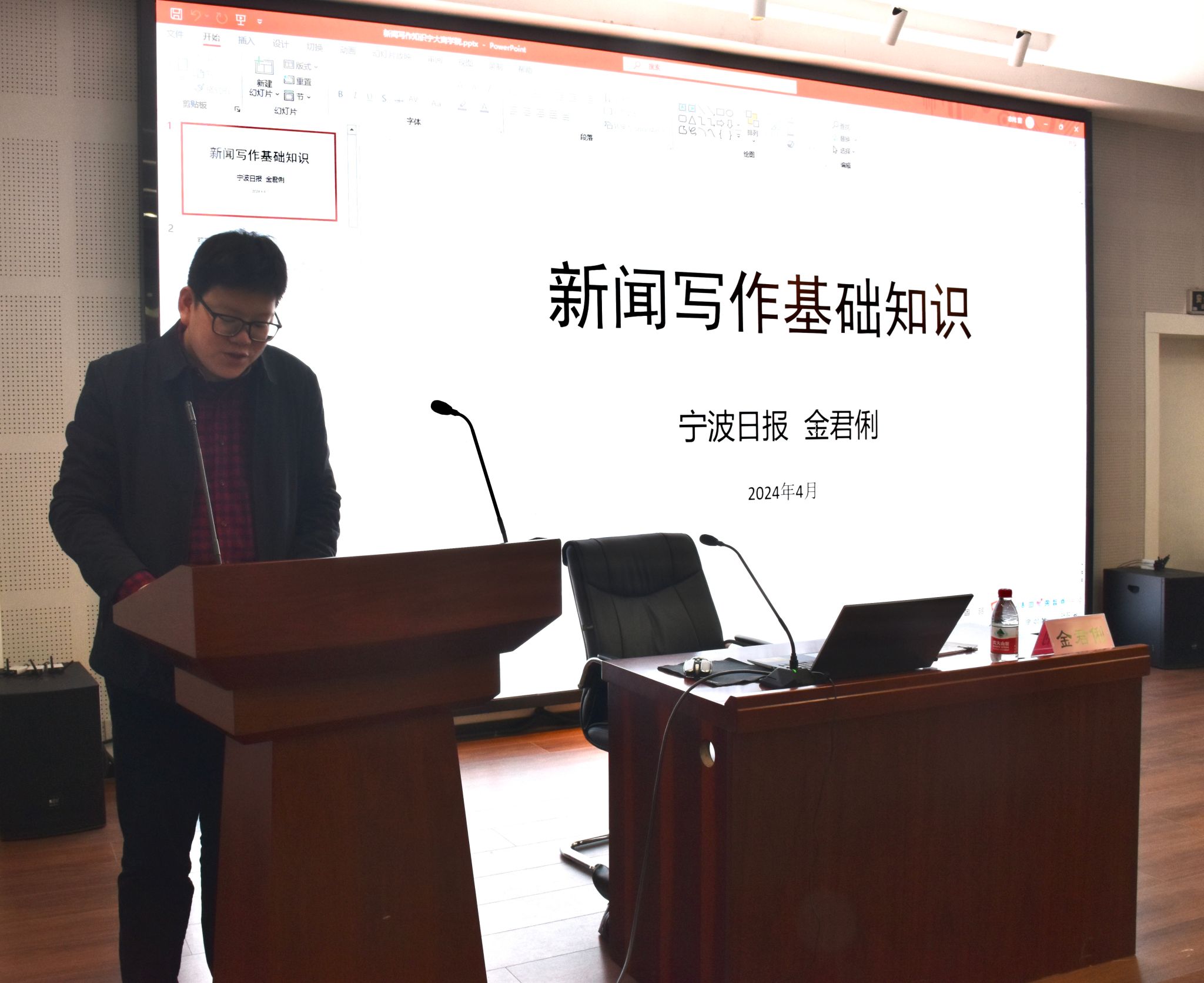 4月17日下午,真诚图书节系列活动之“笔尖下的时代脉搏:新闻写作基础知识”专题讲座在曹光彪楼501报告厅顺利举行,原宁波日报社编委、高级编辑金君俐作《新闻写作基础知识》专题报告。四虎影院 副院长谢慧明主持讲座。