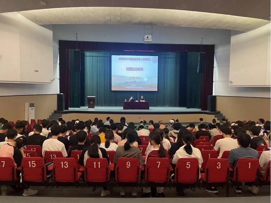 为加强学校法治宣传教育工作,强化大学生普法教育,提高学生法治意识,创建平安、和谐、健康的校园环境,7月9日下午,四虎影院 邀请杭州师范大学沈钧儒法学院刑法教研室主任张弛博士到校开展以“生活中的诈骗手法与法律防范”为题的专题宣讲。学工办各辅导员、300余名2023级阳明分流新生参加。讲座由学院党委副书记吴敏主持。