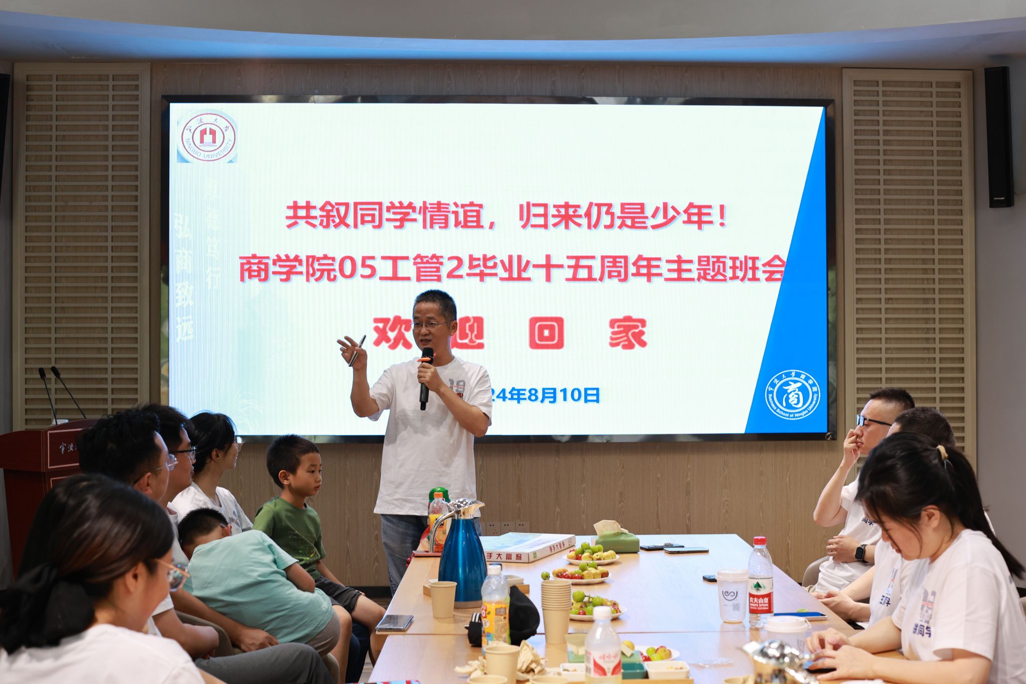8月10日,四虎影院 05管理2班30位校友齐聚校园,举行毕业十五周年同学会。工商管理系教师朱福建、班主任杜琳应邀出席活动,师生一起共忆往昔,畅谈人生,憧憬未来。