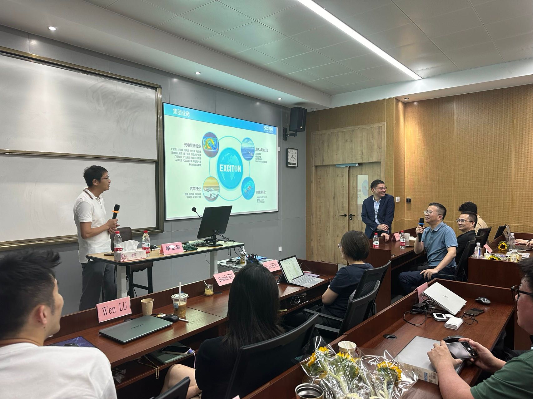 胡总首先从公司管理梯队、集团业务、生产布局、销售发展、所获荣誉等几方面对激智科技的发展现况进行了综合介绍。再从“一个目标”,“二个基础”,“三种模式”,“四轮驱动”和“五年百亿”等五方面向众人展开了激智科技以“科技激扬生活”为企业使命,扎实推进“成膜技术”和“薄膜产品”研发,通过深耕光伏、电池、光电和汽车等四大业务领域,逐步由“进口替代”、“自主创新”达成“全球领先”的发展路径。