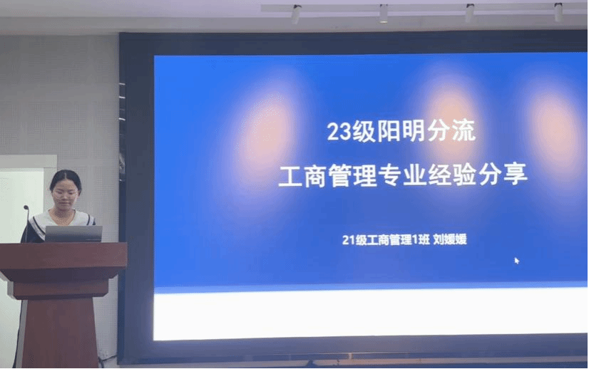 随后,来自21级工商管理专业的刘媛媛、袁冰倩向在座新生做经验分享。两位同学从专业学习、科研竞赛、学生工作等多方面进行了经验总结,为同学们的学业目标及学习规划制定方面提供了有效建议和参考。