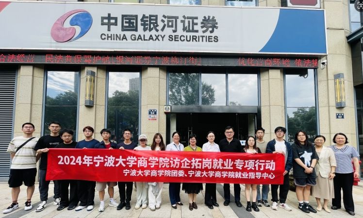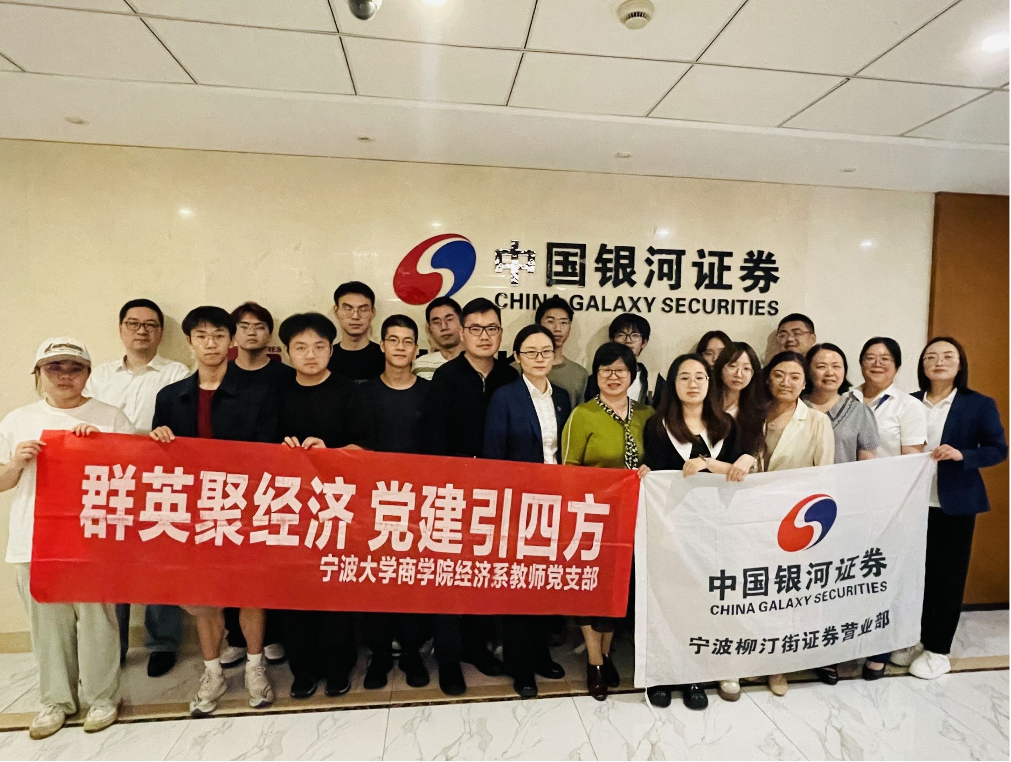 为促进高校与企业之间的相互了解,拓宽学生就业聚道,探索产学研校企协同育人合作项目。6月12日下午,四虎影院 经济系系主任徐群芳带队一行前往中国银河证券股份有限公司宁波柳汀街证券营业部和中信证券股份有限公司宁波分公司开展师生访企拓岗与调研交流活动。