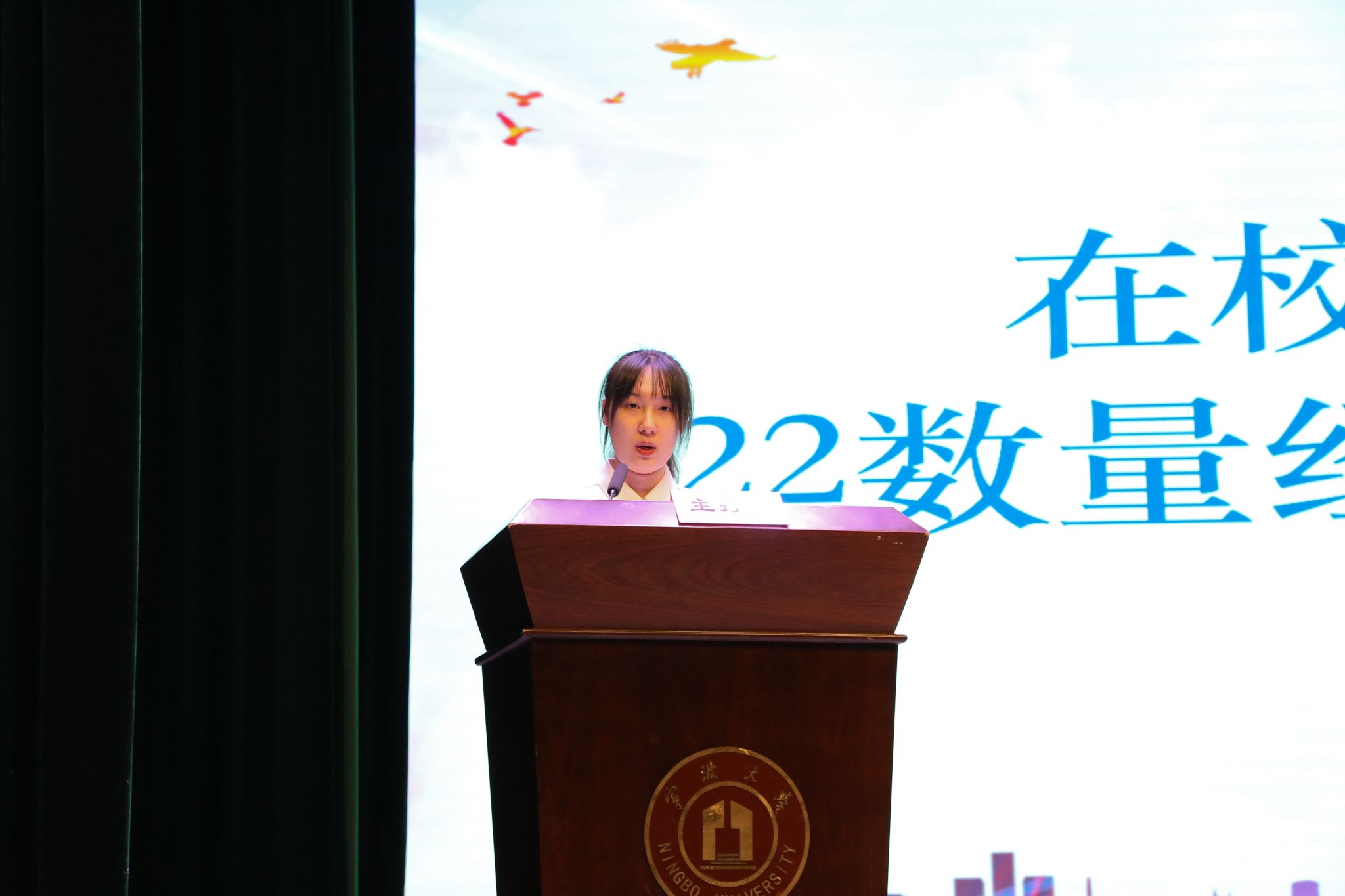 研究生在校生代表2022级数量经济学研究生戴佳颖,以“三心”为主题,鼓励学弟学妹们在四虎影院 提供的各类学习实践中感知世界的变化,锤炼刻苦学习的意志,勇敢走向社会找到属于自己的天地,发光发热。她鼓励同学们,在追逐梦想的广阔舞台上,要始终保持初心,将时代变化转化为人生机遇。