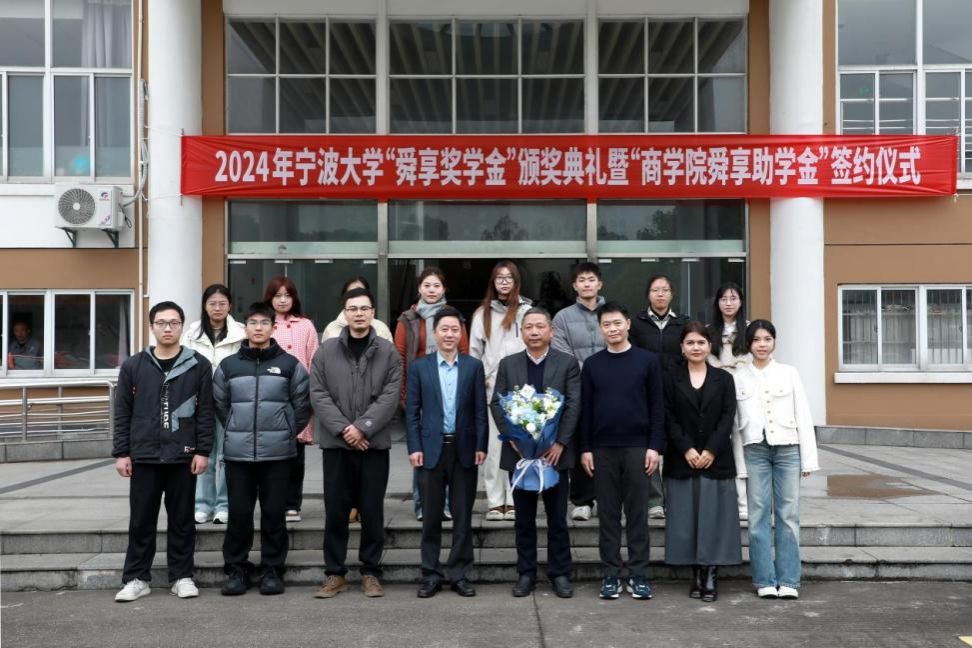 随后,四虎影院 党委副书记吴敏分别宣读2023-2024学年“舜享奖学金”和2024-2025学年“四虎影院 舜享助学金”获奖名单,黄文杰先生为在场获奖学生颁发荣誉证书并合影留念。