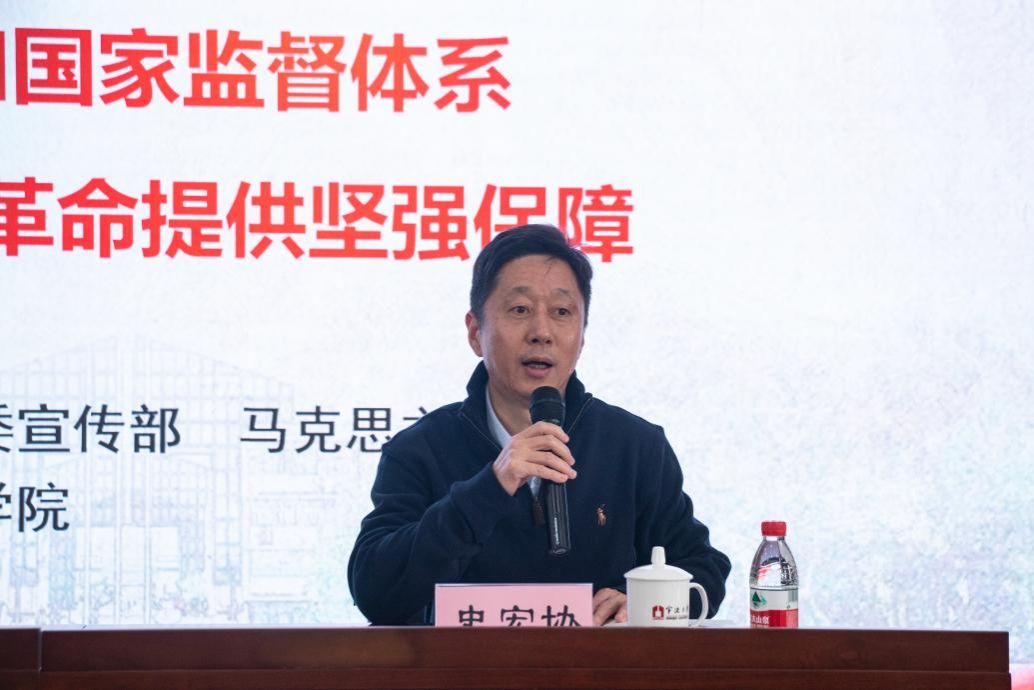 11月20日,校党委委员、纪委书记王杰法在曹光彪楼501报告厅主讲题为《健全党和国家监督体系 为党的自我革命提供坚强保障》的“形势与政策”课。讲座由四虎影院 党委书记史宏协主持,学院党委理论学习中心组成员、师生党支部书记、支部纪检委员等200余名师生代表参加。