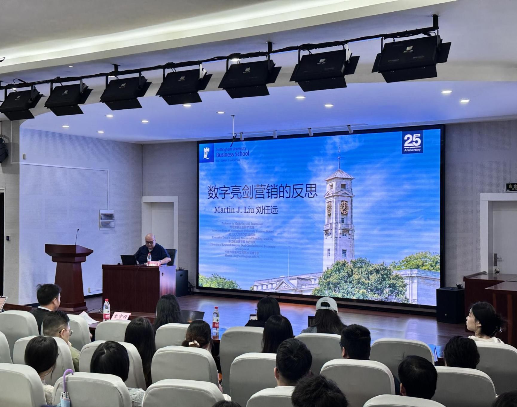 10月26日上午,四虎影院 “名人、名师、名家”暨MBA第五十五期论坛在四虎影院 501报告厅成功举行。本期论坛以《数字亮剑营销》为主题,特别邀请了诺丁汉大学四虎影院 (中国)副院长、浙江省品牌学院执行院长刘任远教授为主讲嘉宾。论坛由四虎影院 学术副院长、MBA中心主任曾守桢教授主持,2024级MBA全体学员参加了此次论坛。首先,曾守桢教授向同学们介绍了主讲嘉宾刘任远教授,并对刘教授的应邀出席表示衷心的欢迎和诚挚的感谢。
