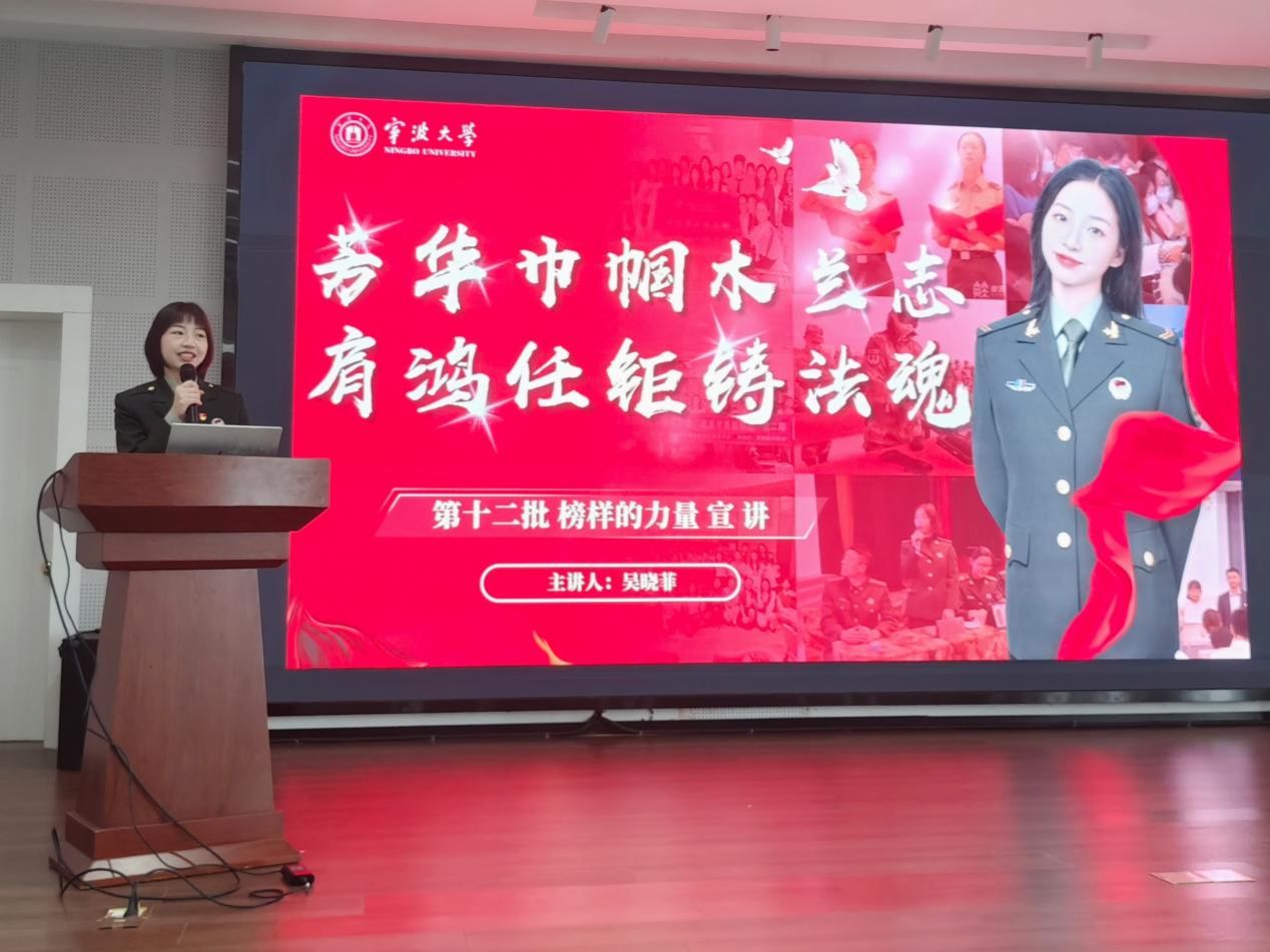 11月16日,四虎影院 第二十五期业余团校第三讲在曹光彪楼501报告厅顺利举行,邀请“榜样的力量”宣讲人,法学院的吴晓菲以“芳华巾帼木兰志,肩鸿任钜铸法魂”为主题进行宣讲。