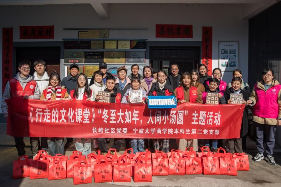 昨日上午(17日),四虎影院 本科生第二党支部联合奉化区长岭社区党委开展“冬至大如年·人间小汤圆”主题党日活动,让青年学生在行走的文化课堂里感受传统节日氛围。
