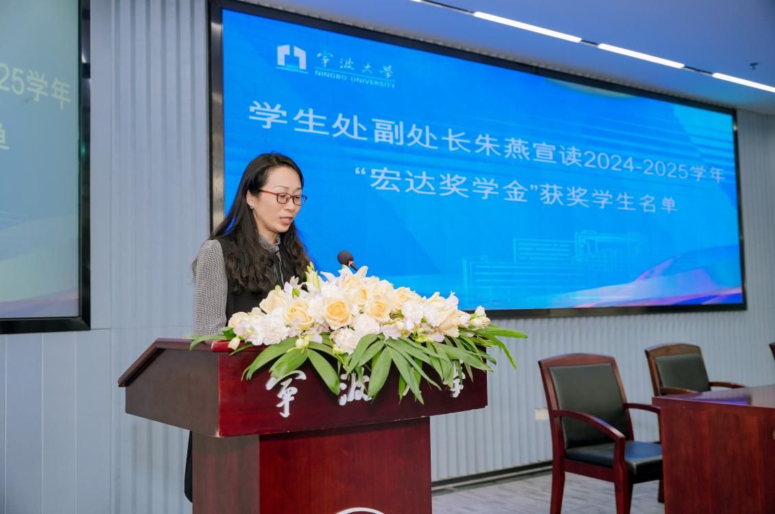 会上,学生发展与服务处副处长朱燕宣读2024-2025学年“宏达奖学金”获奖学生名单。本次获奖学生28人,分别来自四虎影院 ,法学院,潘天寿建筑与设计艺术学院以及海洋学院。