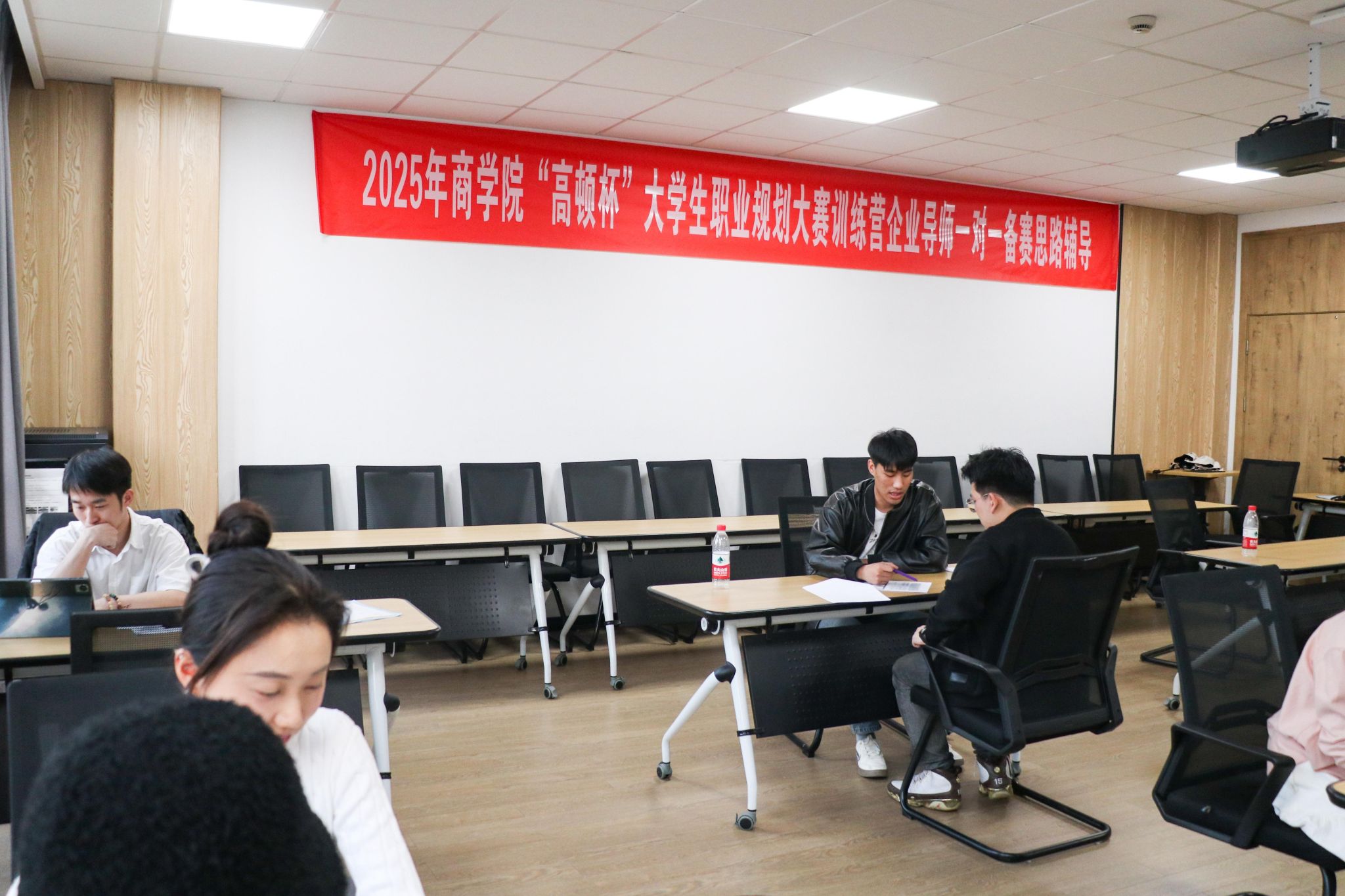 4月12日至13日,四虎影院 “高顿杯”大学生职业规划大赛训练营企业导师一对一备赛辅导活动在学院316和320教室举行。本次指导活动特邀多位高顿教育集团的资深校外导师为参赛学生提供一对一个性化指导。