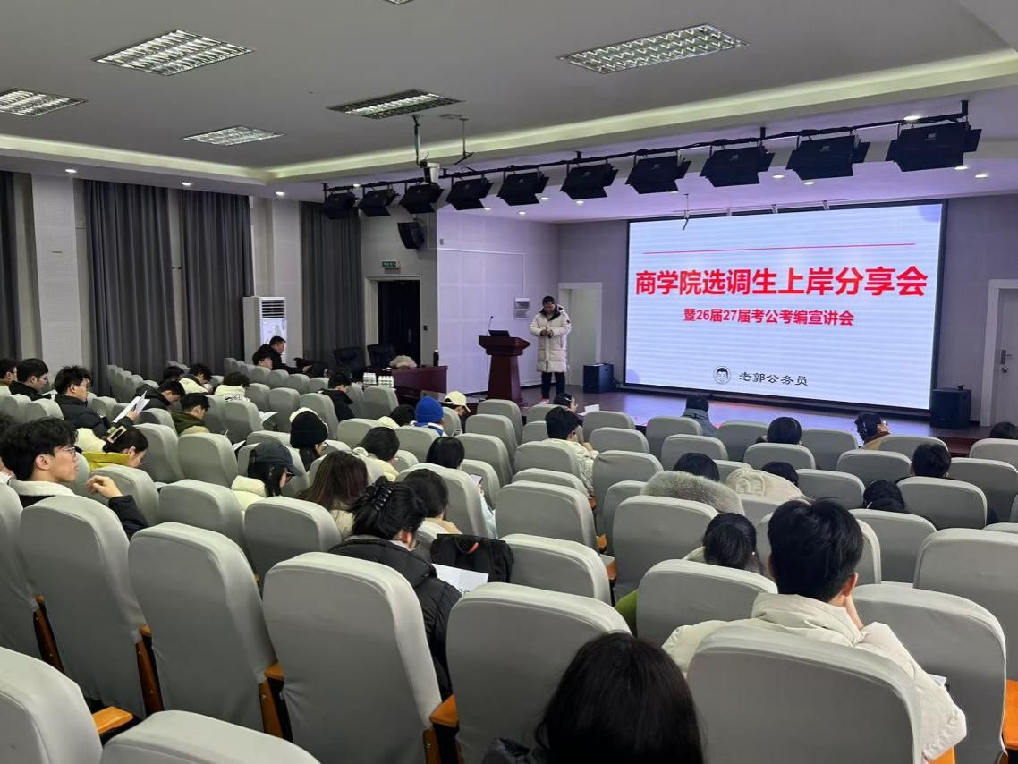 为进一步引导四虎影院 学生树立正确的学习观、就业观、高质量促进就业创新工作。12月22日下午,由四虎影院 就业指导中心联合老郭考公承办的“四虎影院 选调生上岸”分享会在曹光彪楼501报告厅成功举办。就业辅导员马璐璐、老郭考公负责人郭书强以及2022级学生代表出席。