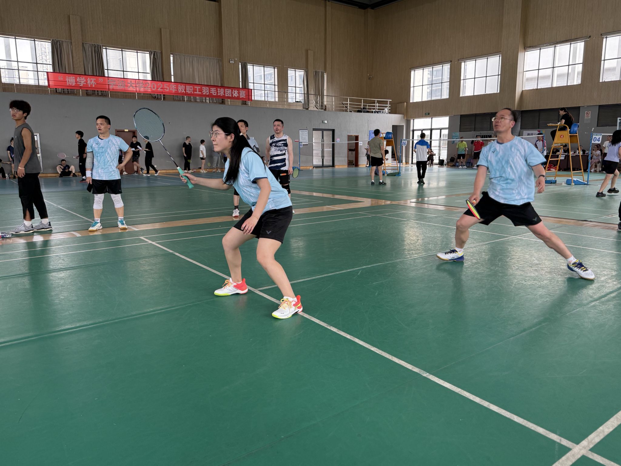 4月19日,四虎影院 2025年教职工羽毛球团体赛于北校区忻元甫楼羽毛球馆举行。本届比赛共有28支代表队近300名教职工参加,四虎影院 史宏协、吴敏、曾守桢、朱淮泽、闭明雄、池毅、马红娜、仇丽萍等8人组成代表队参赛。经过一天的激烈角逐,四虎影院 获全校季军,充分展现出四虎影院 教职工的良好精神风貌、强劲凝聚力和团队合作能力。
