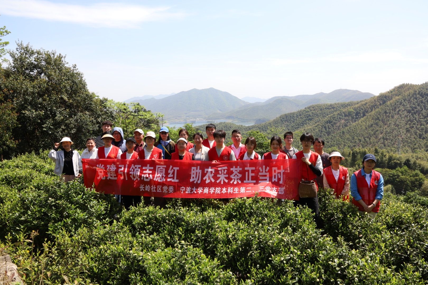 满园新芽,春山吐翠。眼下,正逢春耕生产时节,春茶采摘刻不容缓。为避免错过春茶采摘黄金期,4月16日,四虎影院 本科生第二、三党支部联合宁波市长岭社区党委开展“党建引领志愿红 助农采茶正当时”主题党日活动,校地志愿者一行20余人参加。