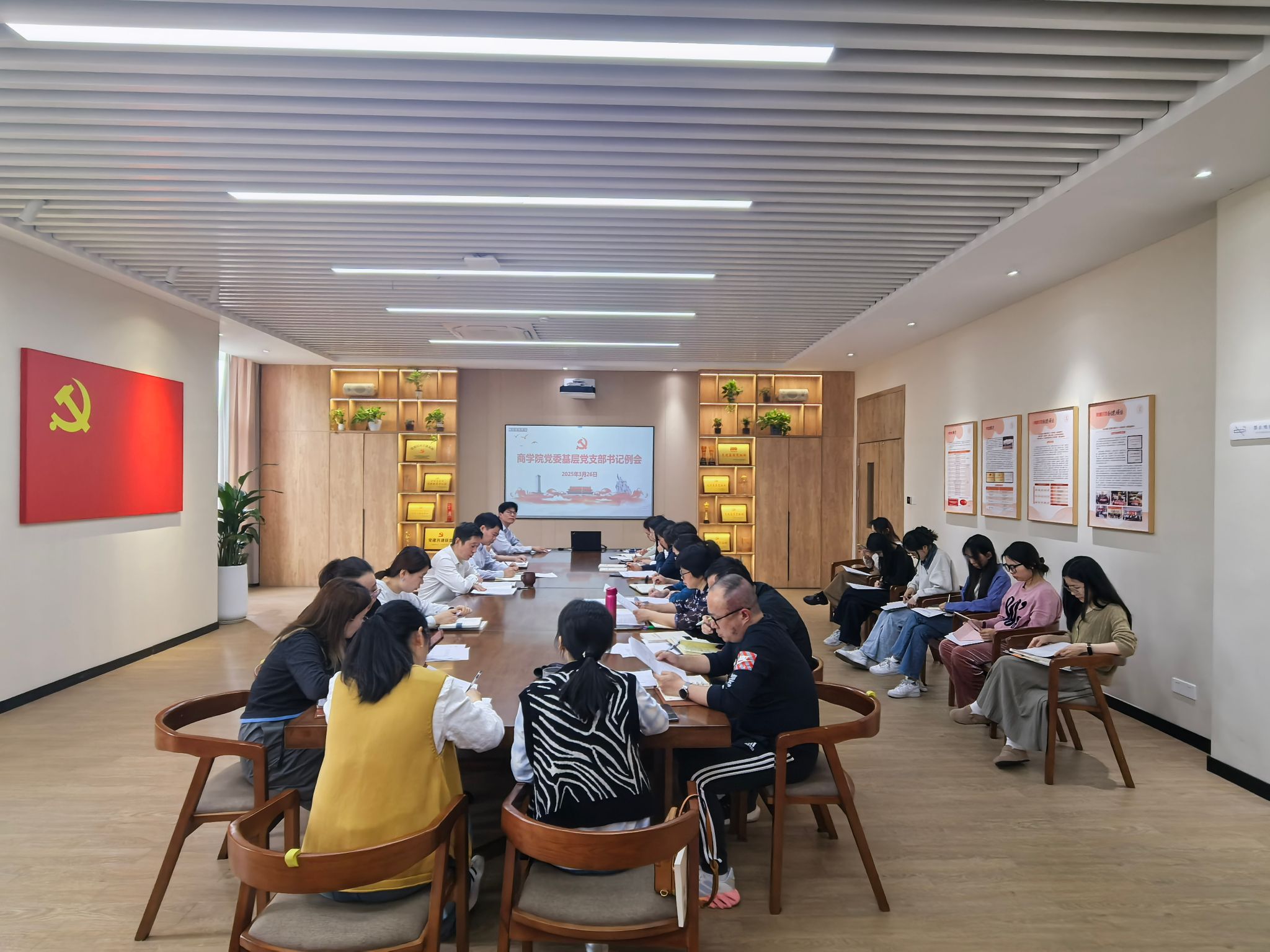会议同时传达学习学校二级党组织书记例会精神,反馈上年度党建考核存在问题,布置本学期学院党建工作。