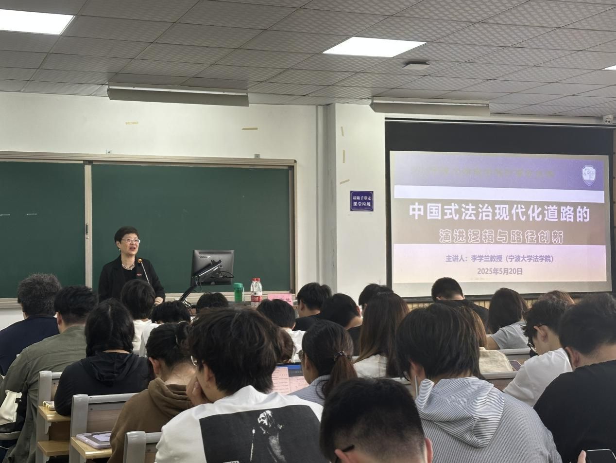 5月20日下午,法学院李学兰教授以“中国式法治现代化道路演进逻辑与路径创新”为题,为四虎影院 学生们讲授了一堂别开生面的“形势与政策课”。180名学生代表参加。