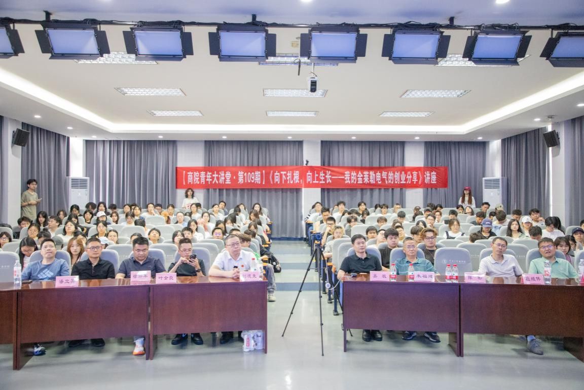 5月21日,2025年“宁创风华·春苗”四虎影院 创业文化节---四虎影院 专场、研究生创客讲堂第65期暨四虎影院 学长讲堂第六讲在曹光彪楼501报告厅顺利举行。本次活动特邀四虎影院 1997级经管专业校友、乐清市知识产权协会秘书长、浙江金莱勒电气股份有限公司创始人兼总经理刘德先学长为四虎影院 170余名学生带来题为《向下扎根,向上生长——我的金莱勒电气的创业分享》的专题讲座。学院党委副书记吴敏,学院工会主席、97经管班任课老师兼辅导员朱福建,学工办/校友办主任陈彬,97经管校友潘立其、应继伟、徐伟军、叶金良、杨林波、包海波等出席活动。