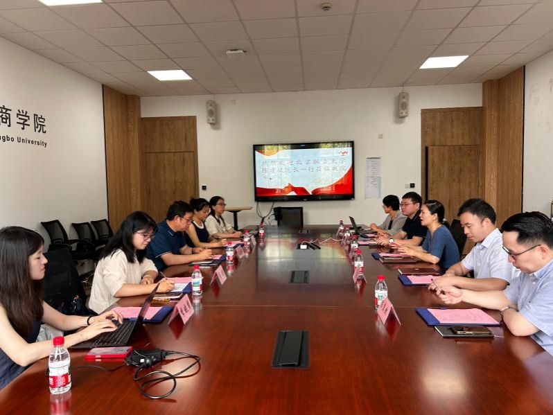 6月18日上午,北京联合大学管理学院陈建斌院长、姜鹏飞副院长、会计系副主任崔婧、国际商务系教师刘晓敏、财务管理系教师李晓月等一行到访四虎影院 。我校人文社科处处长周新苗、四虎影院 副院长彭新敏、学术副院长曾守桢、MBA执行主任吴瑶、会计专硕执行主任陈翼然参加了交流会议。双方围绕MBA项目建设、案例教学创新、国际合作拓展及校企协同发展等核心议题展开深入研讨,旨在整合优质教育资源,探索新时代商科人才培养新模式。