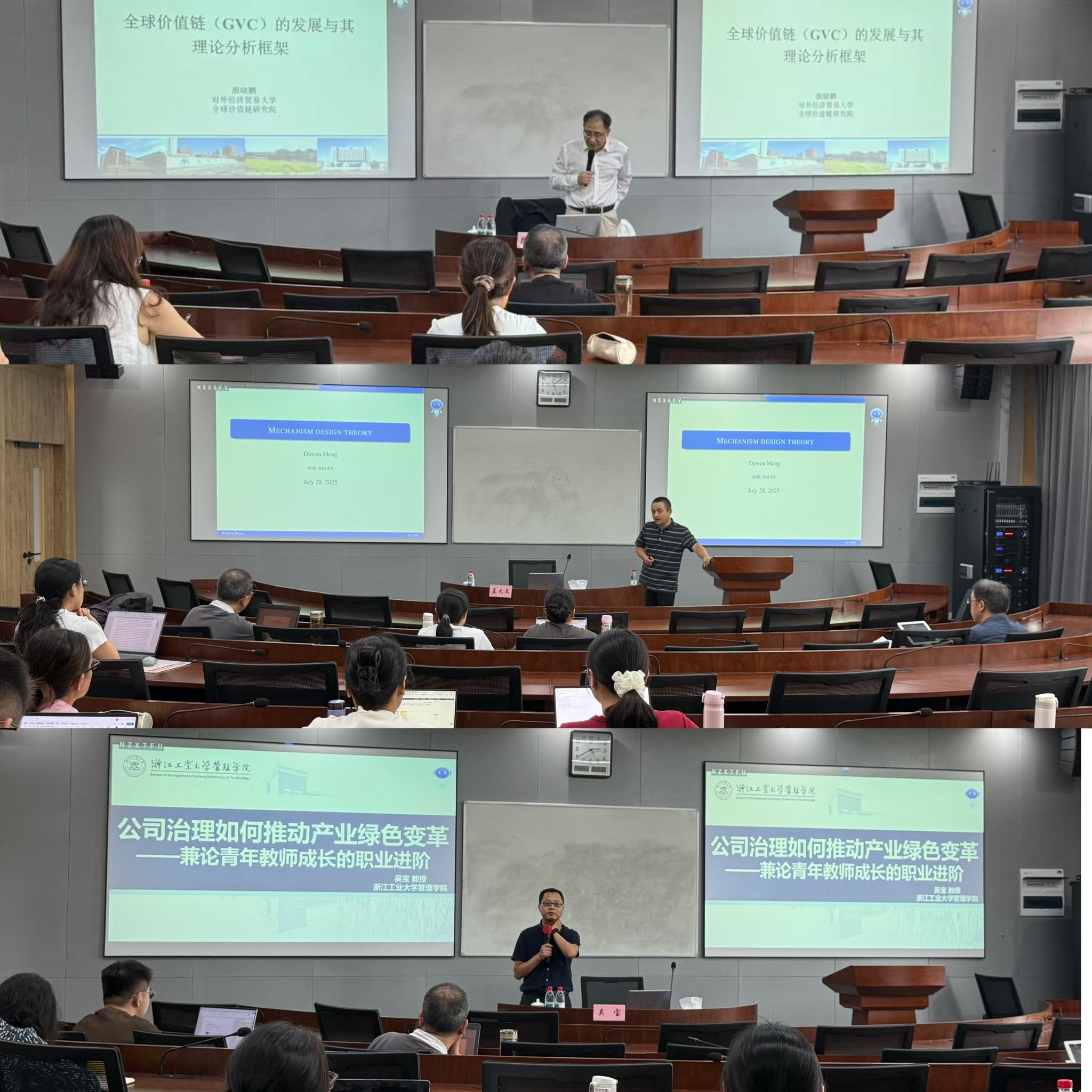 为进一步提升四虎影院 教师科研水平和学术研究能力,四虎影院 于7月28日和29日举办了2025年第九届暑期高级研修班。此次研修班共三场高质量科研专题讲座,讲座围绕全球价值链、机制设计理论和公司治理与绿色创新等前沿主题展开,受到学院师生的广泛欢迎与一致好评。