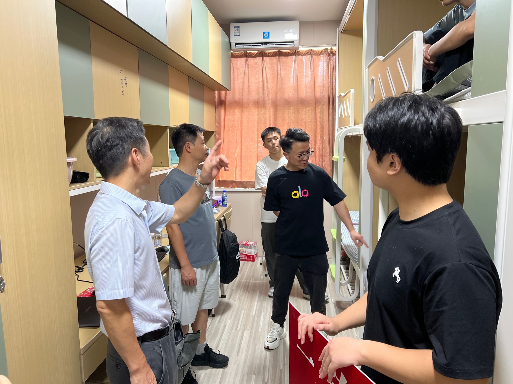 在走访过程中,四虎影院 领导一行与新生亲切交谈,详细询问各类情况及生活所需。“老家来自哪里?”“有带爸妈逛一下校园吗”“宿舍还满意吗?”句句暖心话语消除了新生初到校园的陌生与孤独,增进师生情谊。