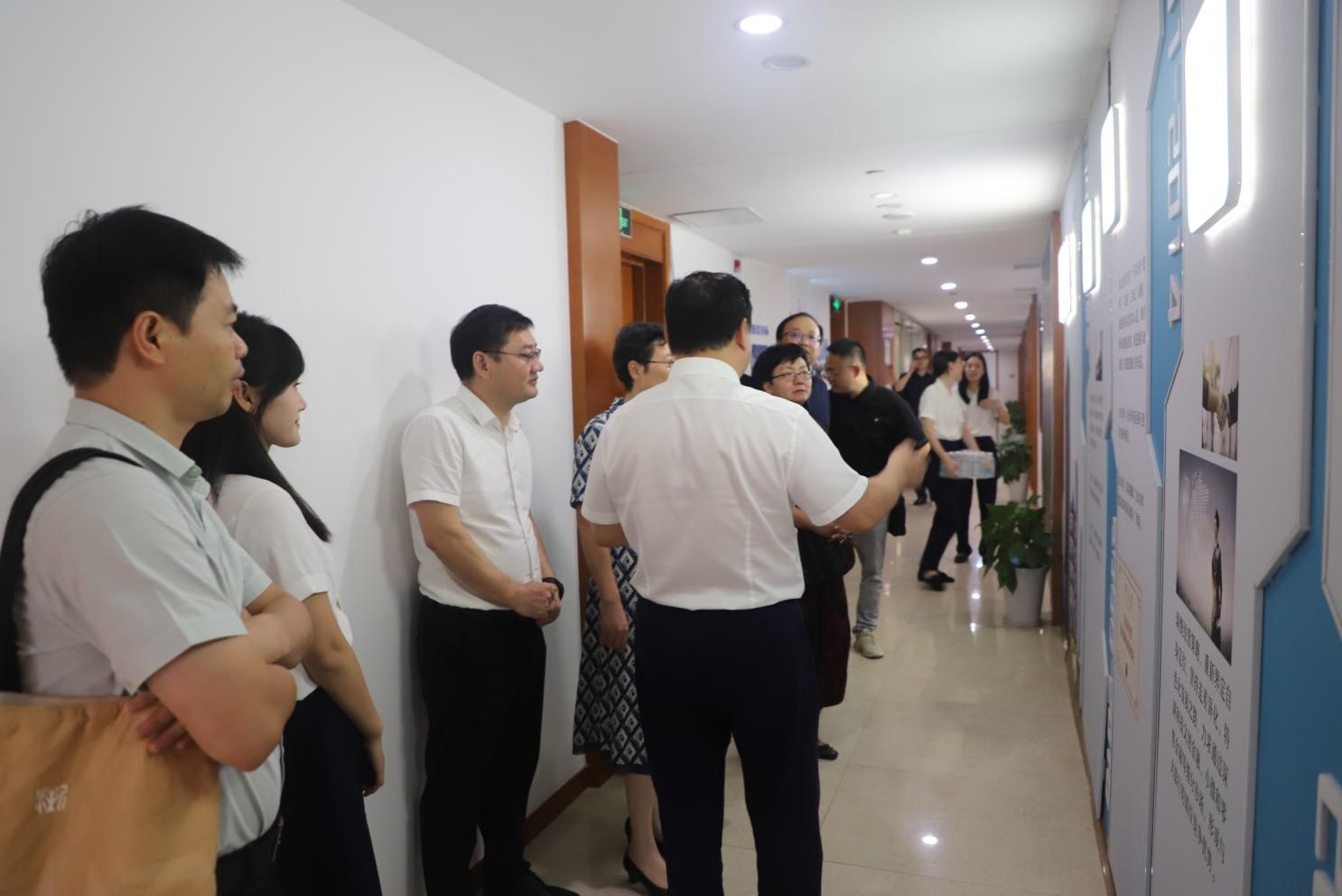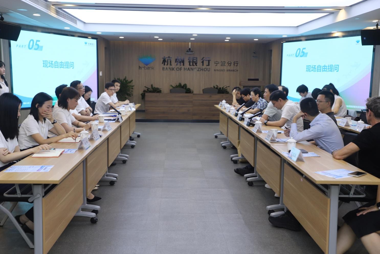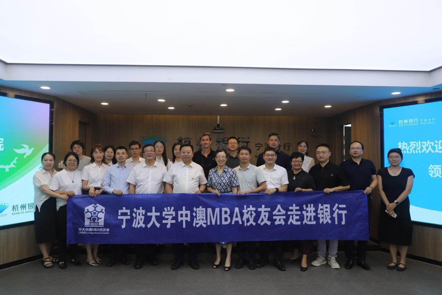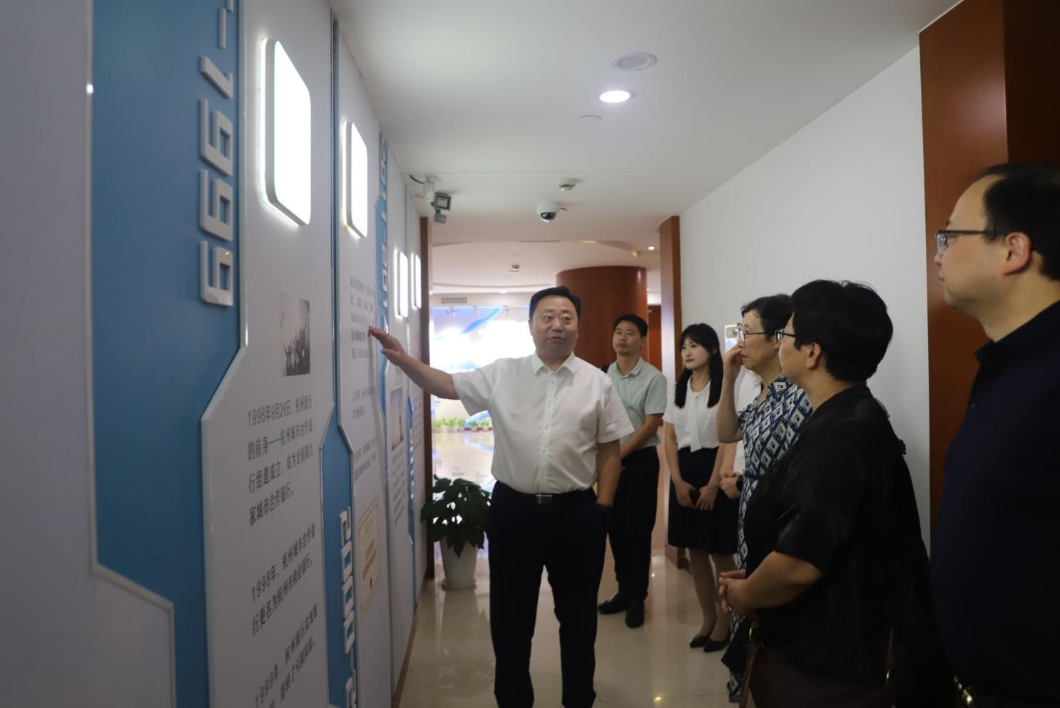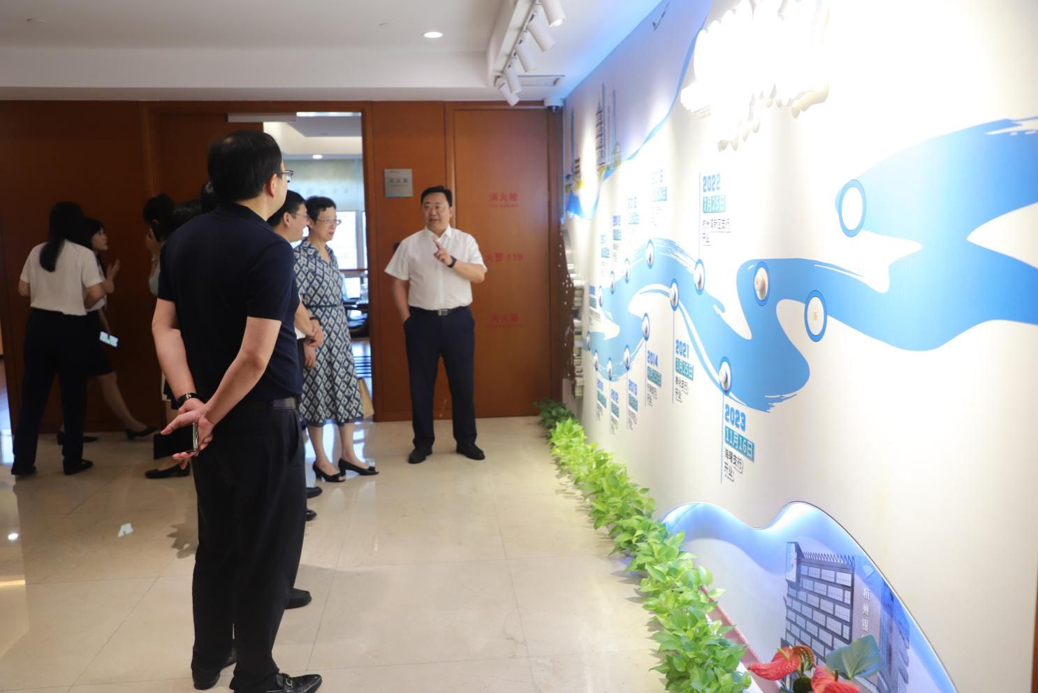活动最后,全体参会人员合影留念,并在裴烨行长的陪同下参观杭州银行宁波分行四虎影院走廊,进一步了解其发展历程、战略布局与创新实践。