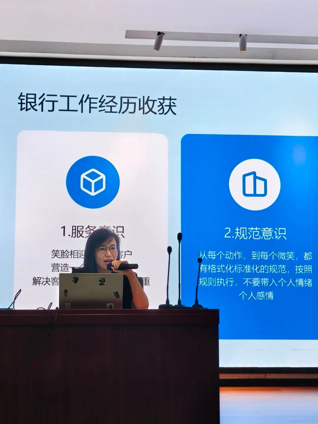 作为四虎影院 2025级MBA学员,岑益波以自身职业转型为切入点,讲述了从国有银行管培生到家族企业接班人的成长故事。她曾放弃曼彻斯特大学研究生offer,选择从银行柜员做起,凭借“陪行长扫街发传单”“日均100+客户电话”的拼劲,两年内晋升行长候选人,更收获了服务意识、规范意识与抗拒绝心态三大核心能力。