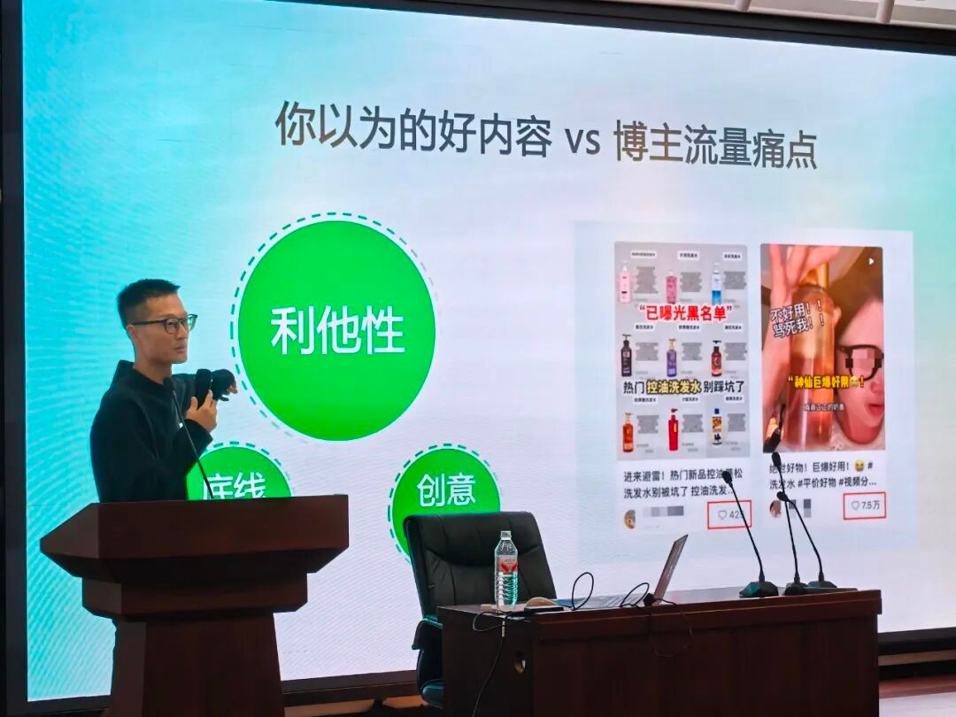 针对企业营销,他提出“KFS种草组合”与“反漏斗破圈”两大核心策略:整合 K(KOL即关键意见领袖、KOC即关键意见消费者、KOS即关键意见销售等达人资源)、F(FEEDS即信息流投放)、S(SEARCH即搜索优化)三大板块,构建从达人创作传播建立信任、信息流精准触达流量到搜索场景承接需求的完整链路,助力产品实现高效种草;同时详解小红书商业产品矩阵,建议企业善用“蒲公英”等工具,实现从品牌曝光到生意转化的闭环。对于想入局自媒体的个人,他给出实用建议,重点在“真实+有用”的内容,别纠结养号、发布时间,手机+剪映就能起步,勤练比技巧更重要。