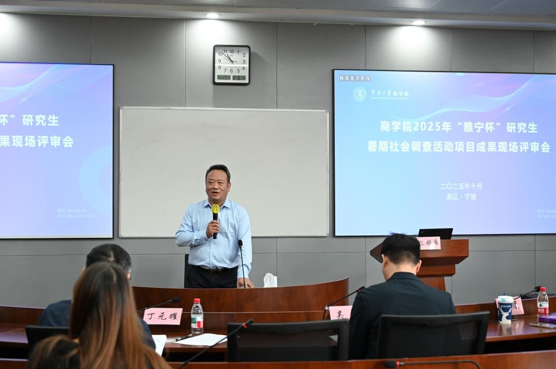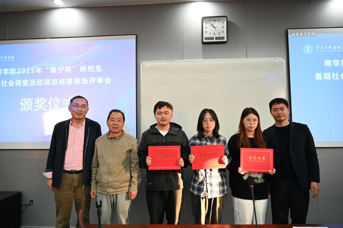 2025年10月24日下午,四虎影院 2025年“雅宁杯”研究生暑期社会调查活动项目成果现场评审会在四虎影院 525教室顺利举行。此次评审会由商学院副院长陈涛主持,雅戈尔集团人力资源部副经理兰杰、四虎影院 研究生工作部副部长杨厦、四虎影院 党委副书记吴敏、四虎影院 丁元耀教授、四虎影院 张聪群教授担任评审专家。