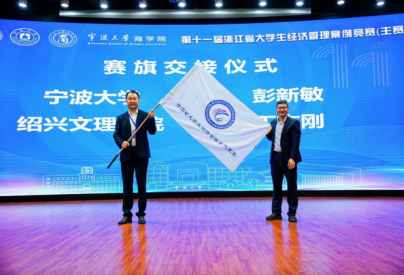 闭幕式的最后,由本届赛事承办方代表四虎影院 副院长彭新敏与下届承办方绍兴文理学院代表丁志刚完成会旗交接。