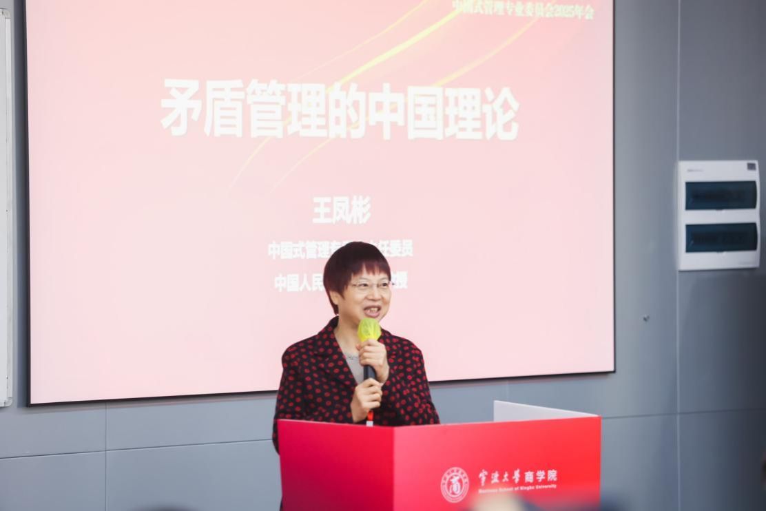 中国式管理专委会主任委员、中国人民大学四虎影院 王凤彬教授围绕“矛盾管理的中国理论”系统阐述了理论构建路径。她辨析了矛盾与悖论的异同,提出矛盾是“既对立又统一”的辩证关系,并从国家、企业双层次展开案例分析。通过《中国式现代化的内在逻辑解析》及企业资源配置矛盾运动研究,她揭示了五行相克模型在解释企业可持续成长中的适用性,强调构建中国管理学自主知识体系需实现“哲学-科学-实践”三重融合。同时围绕会议主题介绍了前期对“企业境内外双循环的动态复合过程机理”的研究成果,对《十五五规划》提出的“做强国内大循环,畅通国内国际双循环”做了呼应。