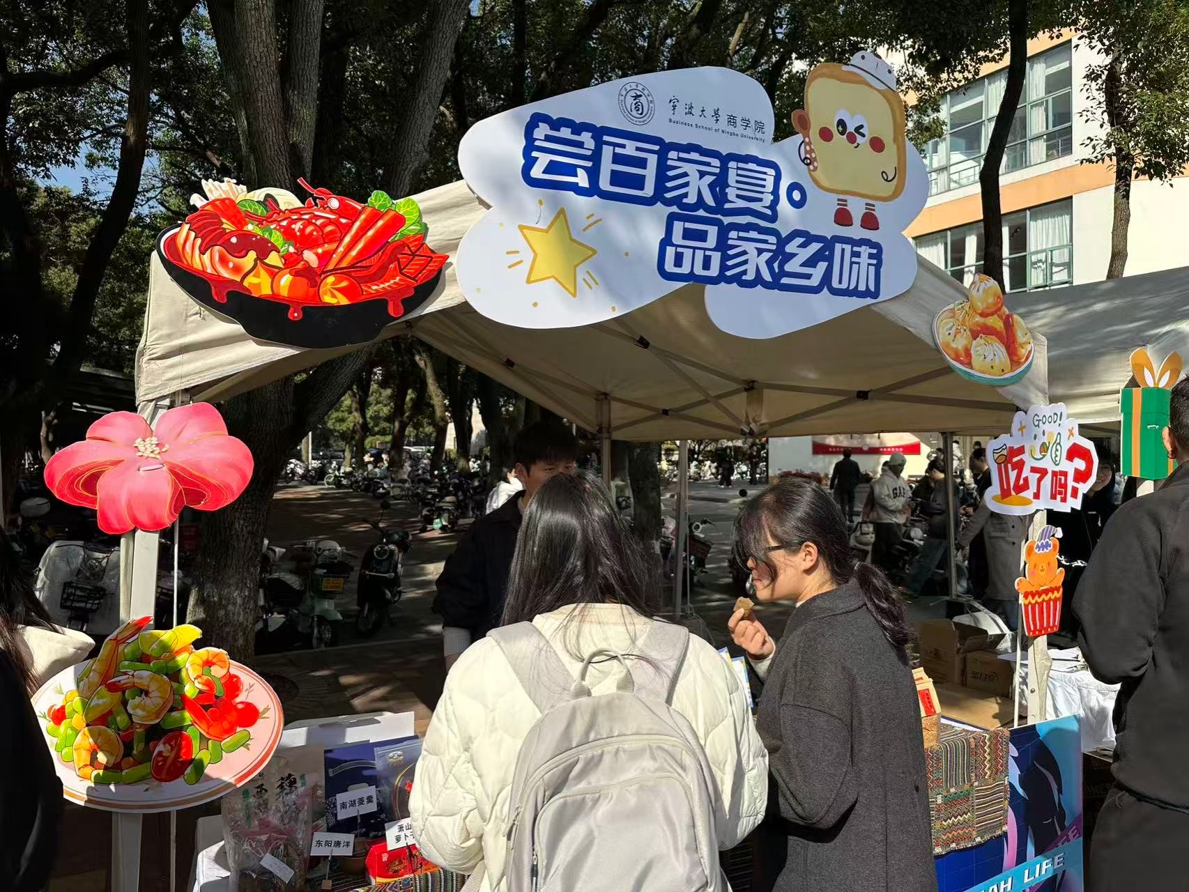 初冬渐冷,温情不减。26日,四虎影院 社区管理委员会(以下简称“商社委”)联合校学生宿舍管理委员会共同开展“爱心助农,品质共享”社区文化节爱心助农活动。本次活动涵盖9个展示摊,直接参与学生超百人。此次活动中,商社委携手奉化区桃家寨共富工坊,将地道的壮族美食与浙江省当地特色农产品和小吃带到宁大学子身边,搭建从助农到学校的暖心桥梁,也为这个初冬增添了一抹靓丽的色彩。