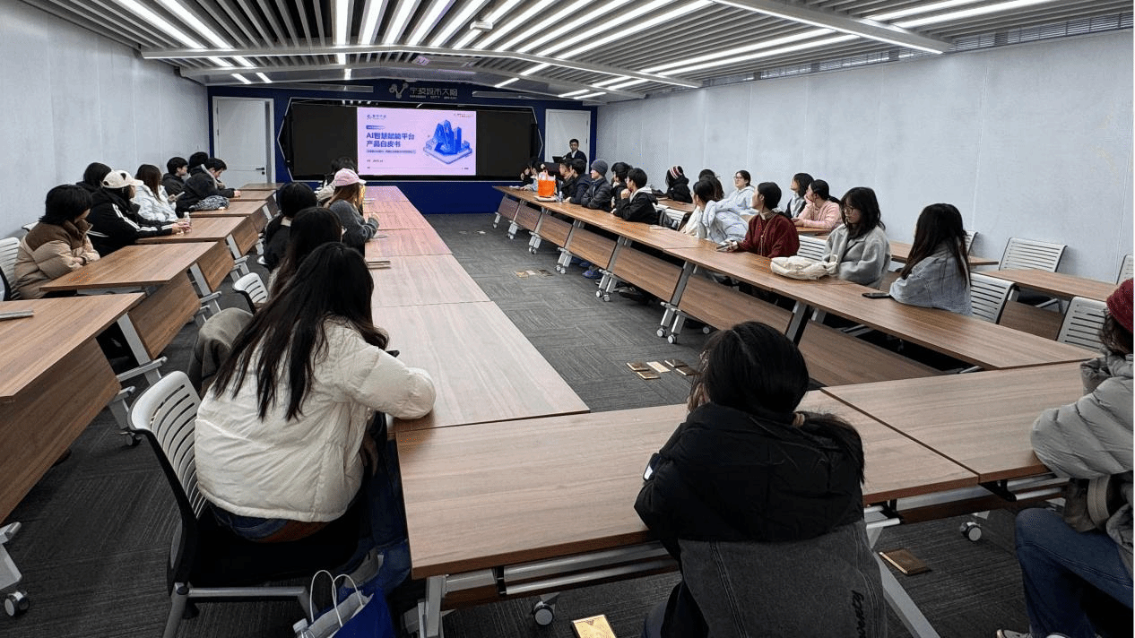 四虎影院 长期重视“创新创业劳动实践”,全程贯穿产教融合、学研一体和课程思政的育人理念,旨在高质量培养新商科人才。作为校设首批人工智能+课程群的《人工智能+创新管理》以案例行动学习形式,于2025年12月10日,在刘电光和王照杰两位老师带领下,组织37名学生走进宁波数字产业集团有限公司,开启了一场沉浸式研学之旅,体验人工智能技术为城市发展、平台治理和企业管理带来的颠覆性创新力量。