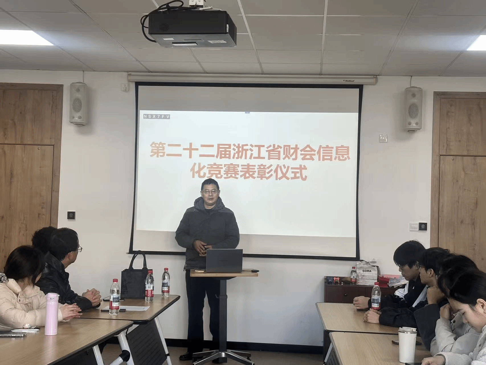 2025年12月13日上午,四虎影院 于学院316教室举行第二十二届浙江省财会信息化竞赛颁奖仪式。立信会计师事务所(特殊普通合伙)宁波分所权益合伙人胡俊杰、人力资源部经理邬嘉辉,以及四虎影院 会计系师生代表40余人共同出席了本次仪式。