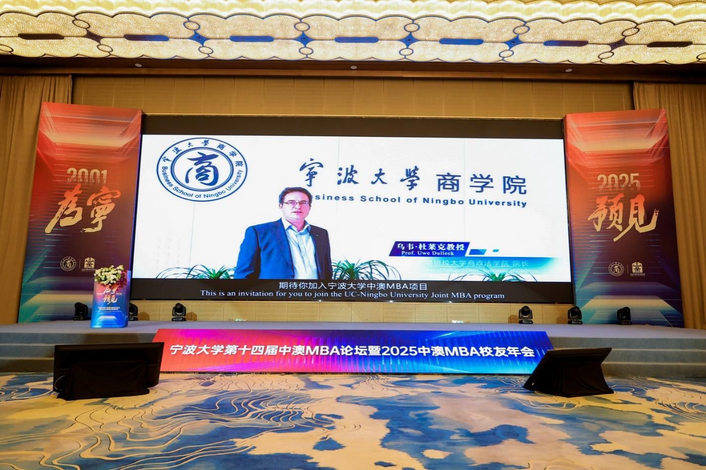 12月13日,“为宁预见”四虎影院 第十四届中澳MBA论坛暨2025中澳MBA校友年会举行。活动由四虎影院 指导,四虎影院 中澳MBA校友会主办。四虎影院 党委书记张瑞丽、四虎影院 党委副书记张真柱、四虎影院 校友会会长聂秋华、四虎影院 校友会顾问叶飞帆、四虎影院 校友会副会长冯志敏、浙江省原发改委副主任谢晓波、长阳科技董事长兼宁波市北京大学校友会会长金亚东、创合汇资本管理合伙人王一、新芝生物董事长兼宁波浙江大学校友会副会长周芳,宁波市人大常委会预算工作委员会主任竺培楠,美康生物董事长邹炳德、招商银行宁波分行行长袁森等出席。论坛由四虎影院 院长周新苗主持。活动特邀国家发展改革委原秘书长、湖南省委原常委、副省长、国务院参事室特约研究员、中国国际经济交流中心原副理事长韩永文,与近400名校友及嘉宾欢聚一堂,共同庆祝中澳MBA校友会年度盛会。