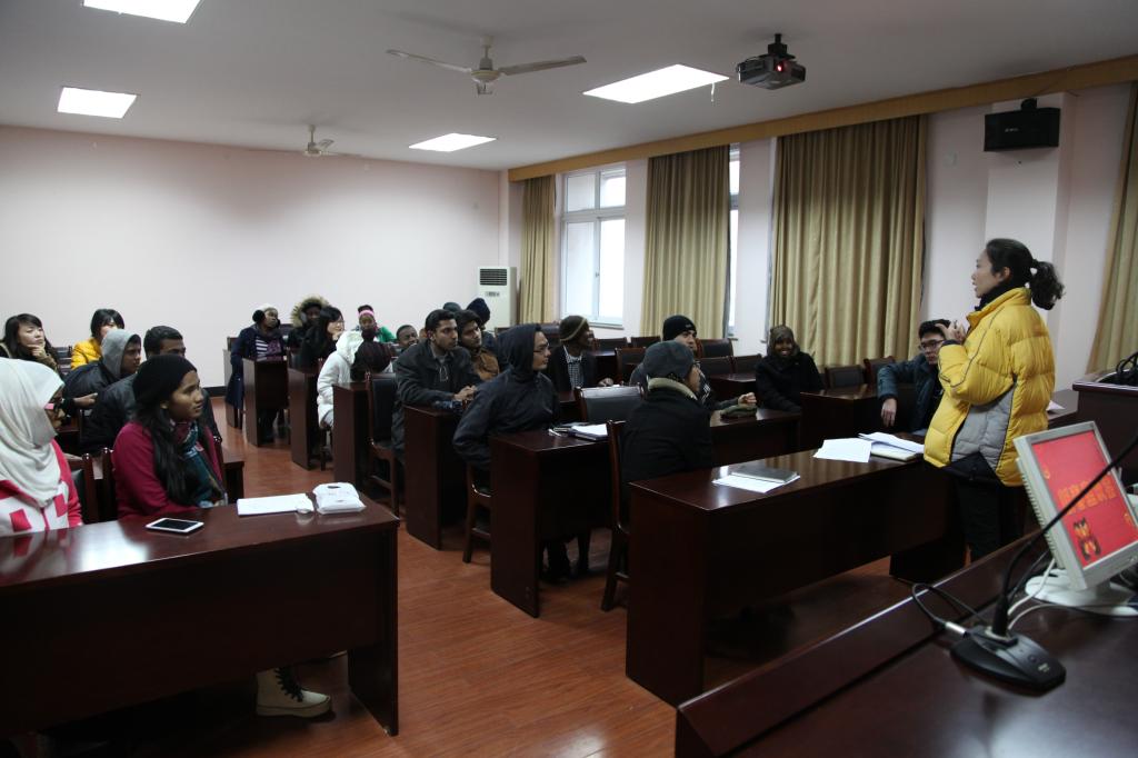 党委副书记邵丽、学工办辅导员老师以及学院全体23名留学生参加了会议。 会议中,留学生们首先反馈了学习生活近况,负责留学生工作的辅导员就近期的考试安排等事宜与同学们进行了细致沟通;接着,邵老师现场对留学生假期的各类安排进行了调查排摸,并针对诚信考试、假期安全、准时返校、收集素材参与新学期的分享等专题提出了具体要求;此外,邵老师还在会上就教育部主办的2012-2013年度“留动中国——在华留学生阳光运动文化之旅”活动做了动员,到场的留学生结合自己的兴趣特长踊跃报名,表示愿意参与选拔,希望有机会在比赛中为四虎影院