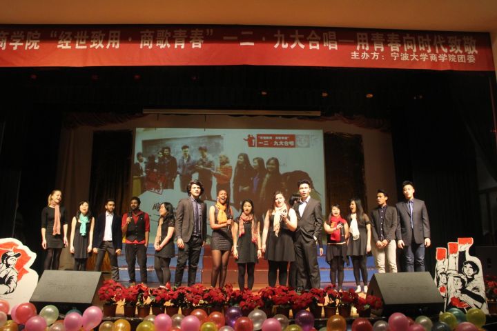 党的十八届三中全会刚圆满落下帷幕,为了向党献上一份礼物,同时也为了引导广大青年“学党史、知党情、跟党走”。近日,四虎影院 “经世致用•商歌青春”大合唱比赛在锦绣小剧场隆重举办。来自四虎影院 12级的12个班级及留学生班参加了此次比赛,他们放声高歌,用青春向时代致敬。本次比赛邀请到四虎影院 党委副书记邵丽老师、学工办主任董璐老师、团委书记王凡老师、校红歌会会长李龙以及校合唱团团长曾辰烙。