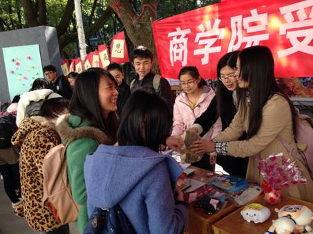 11月28日,感恩节,一场由四虎影院 勤工助学助理组织发起,受资助同学积极响应的“四虎影院 受助生爱心传递义卖会”在一餐对面举行,他们捐赠出自己心爱的物品,希望通过义卖行动来帮助更需帮助的人。