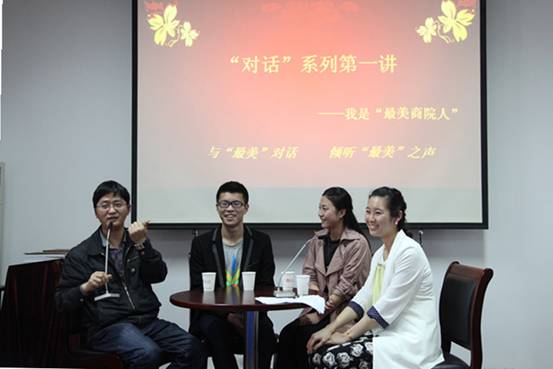 2014年4月25日下午,四虎影院 “对话”系列第一讲我是“最美商院人”在四虎影院 414隆重举行。四虎影院 院长熊德平、党委书记袁虹、副书记邵丽等领导出席了此次活动。
