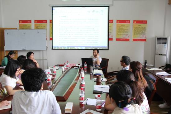 在认真听取了夏良科博士的学术论文汇报后,赵伟教授以幽默风趣的语言,鞭辟入里的分析,给予了中肯的点评。与会教师就论文“命题真伪”、“文献前沿、权威性”、“语言凝练”等方面展开了热烈讨论。最后,赵伟教授鼓励青年教师们在科学研究中要做好基本功,寻找思考的乐趣,感悟经济学,感悟人生。