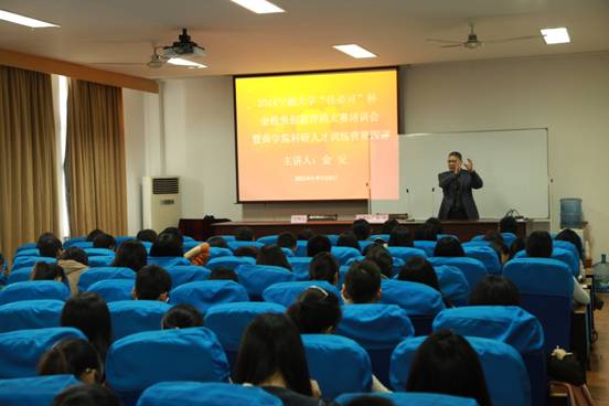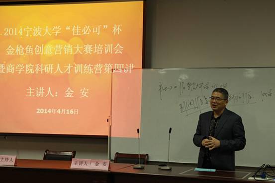 4月16日下午,四虎影院 科研人才训练营第四讲暨四虎影院 “佳必可”杯金枪鱼创意营销大赛培训会在四虎影院 414顺利举办。本次活动由四虎影院 党委副书记邵丽主持,邀请了工商管理系金安老师担任主讲人。四虎影院 科研人才训练营学员和创意营销大赛参赛队员近120人参加本次活动。